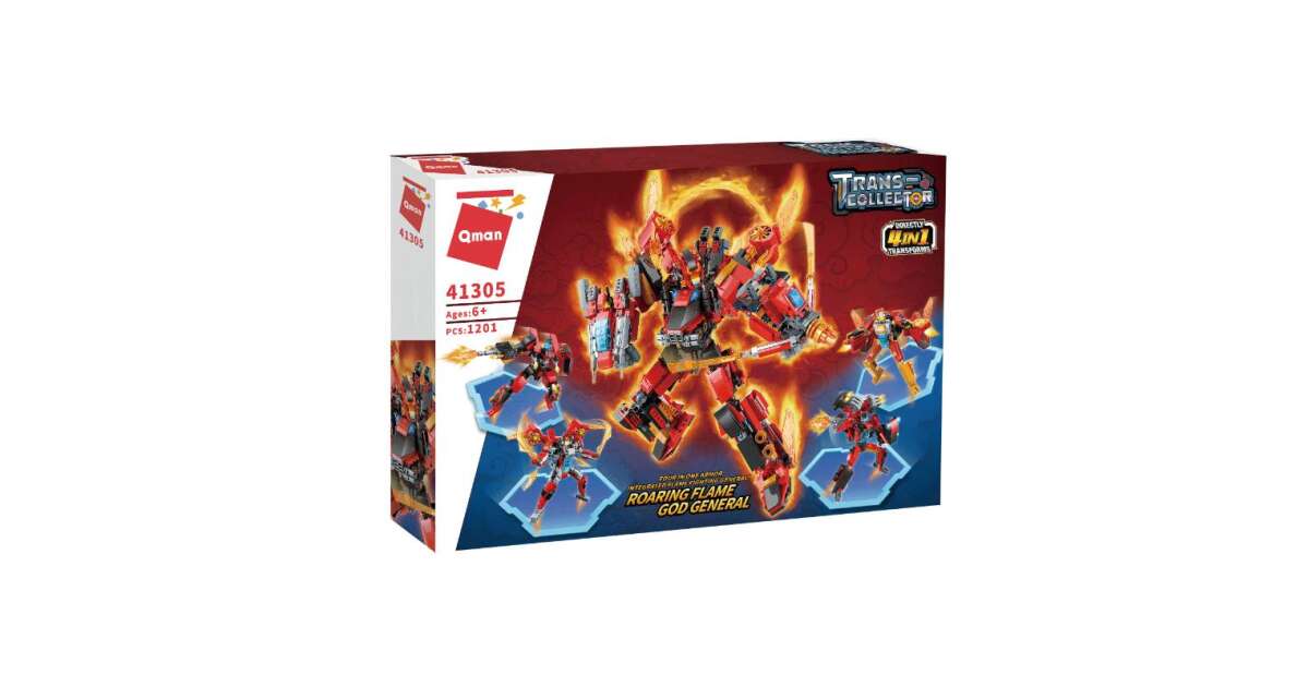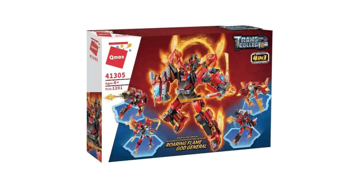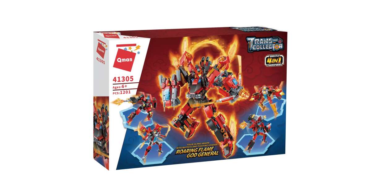 Acest joc de construcție QMAN uimitor, cu 1201 de piese, garantează ore întregi de distracție pentru constructorii creativi! Generalul Focului poate fi transformat în 4 roboți diferiți, fără a fi nevoie să-l demontezi și să-l reasamblați! 🚀