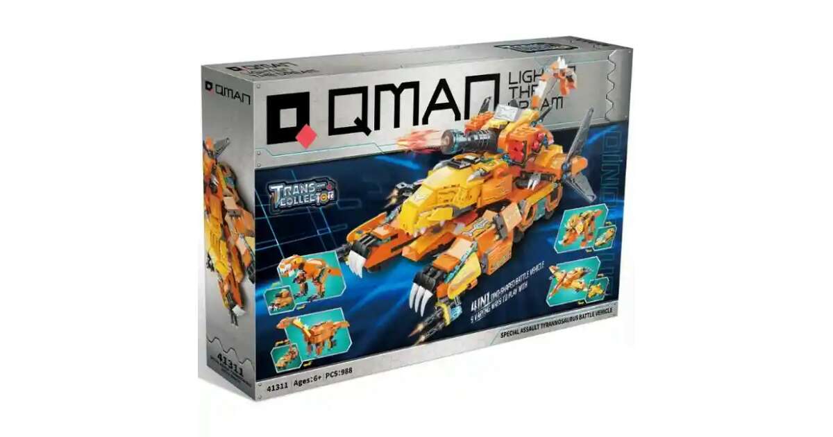 Acest set uimitor QMAN® 41311 conține 988 de piese de construcție cu care poți construi 4 dinozauri diferiți și câte un vehicul de luptă pentru fiecare! Dar distracția nu se oprește aici! Asamblând cei patru dinozauri, poți crea și un robot uriaș și înfricoșător! 🤩