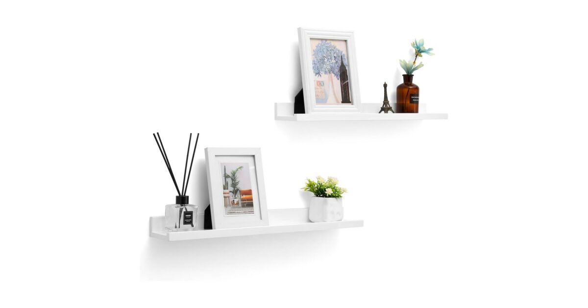 Set de două rafturi suspendate, elegante, de un alb strălucitor, perfecte pentru a-ți expune cărțile, ramele foto sau obiectele decorative. Se montează ușor și aduc un aer modern locuinței tale.