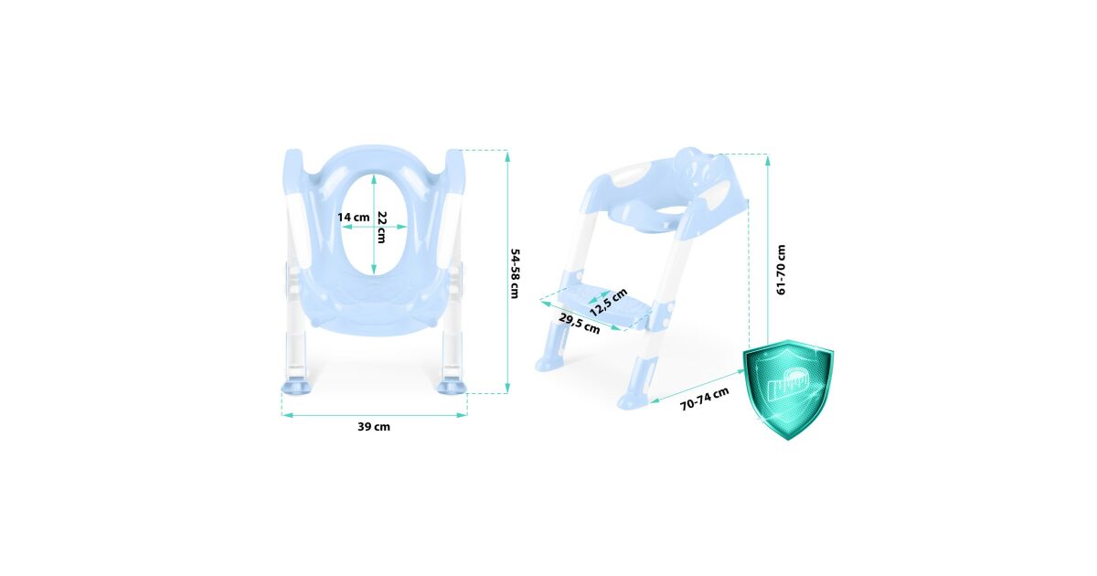 Datorită structurii sale ergonomice, este confortabil și se adaptează la forma coloanei vertebrale a copilului, iar înălțimea sa este reglabilă, astfel încât se potrivește practic oricărui model de toaletă.