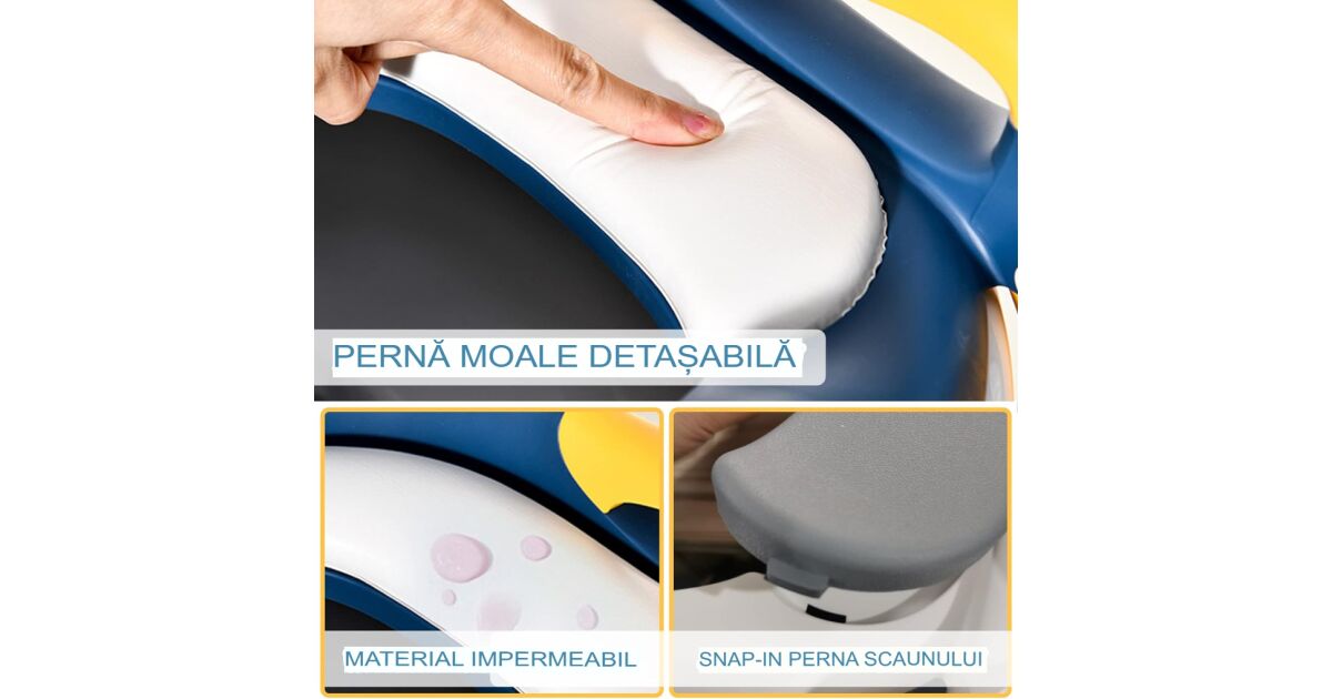 - Confortabil: Design ergonomic pentru o ședere confortabilă. 👶
