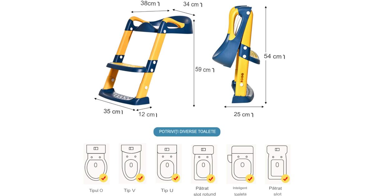 - Înălțime reglabilă: Se adaptează la diferite tipuri de toalete. 🚽