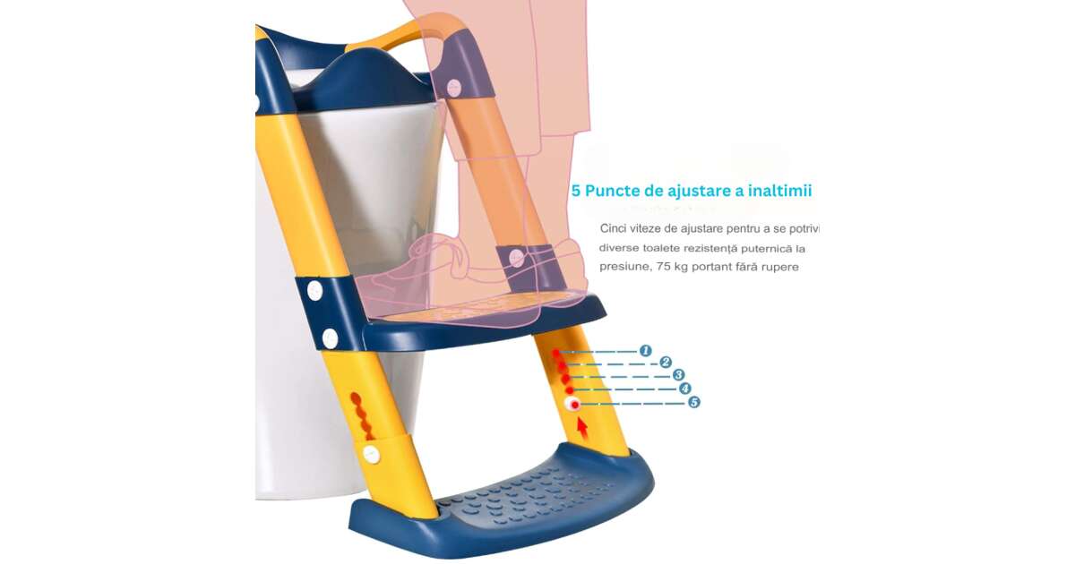 - Înălțime reglabilă: Reglabil în 5 trepte, se potrivește majorității toaletelor și înălțimilor copiilor.