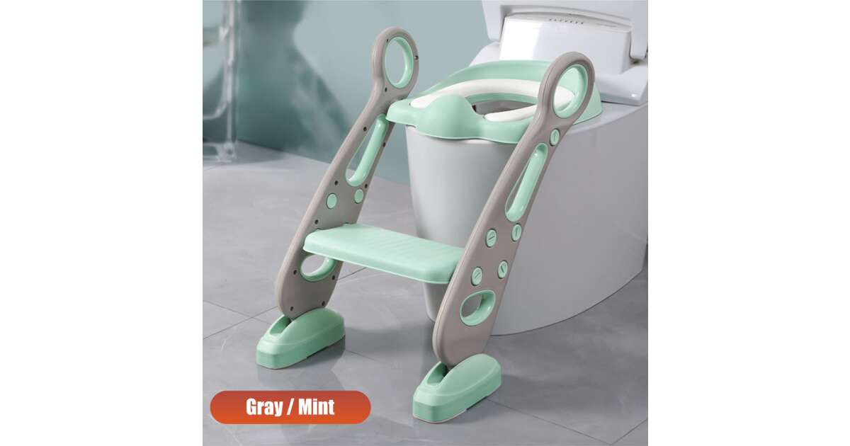 Reductor WC pentru Copii cu Scarita, Linomag®, Plabil, Reglabil pe Inaltime, Colac Moale, 42.6 x 55 x 41.5 cm, Gri / Mint Descriere