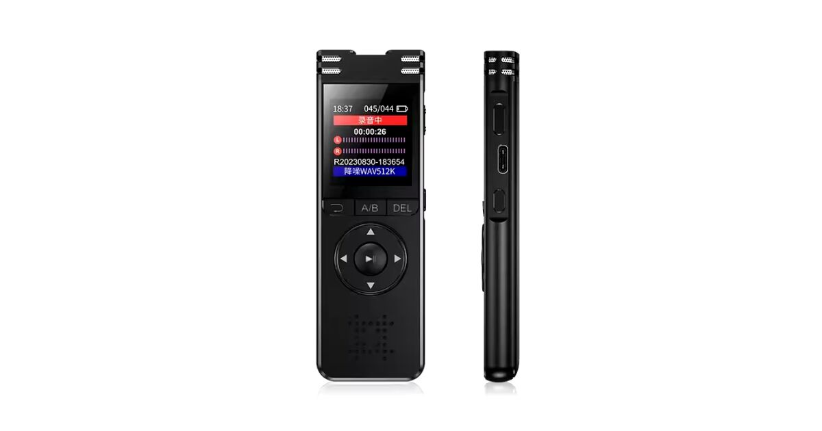 Reportofon Digital cu 2 Microfoane de Înaltă Sensibilitate, Reducere a Zgomotului, Ecran Color și Baterie Durabilă - Negru, Încărcare USB-C