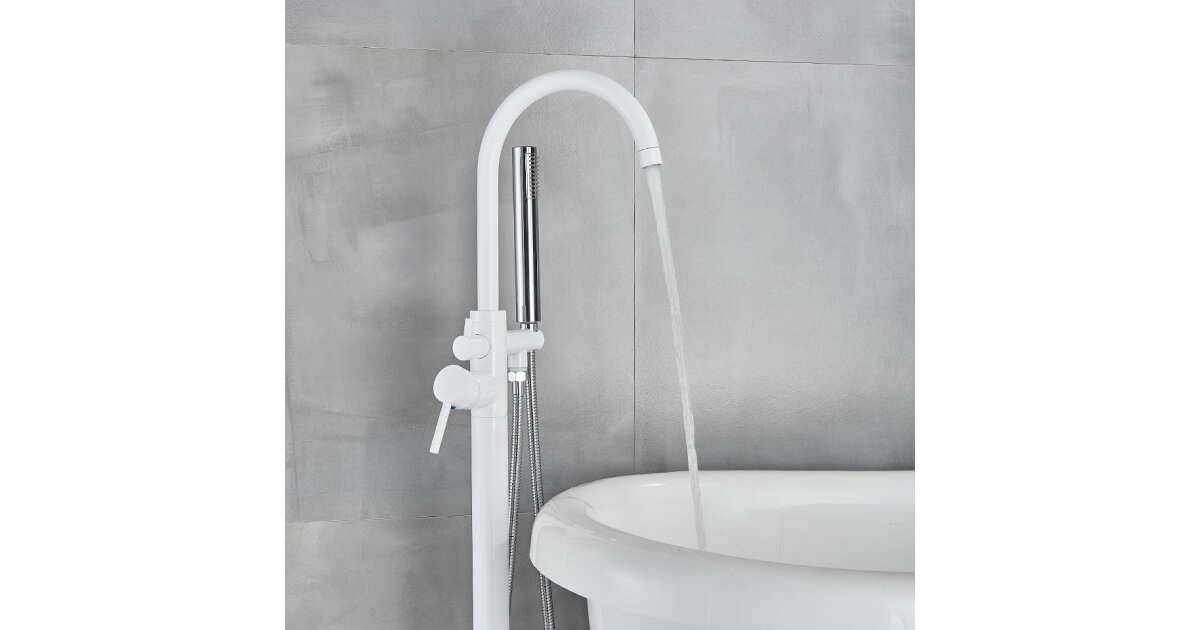 Această robinetă de cadă independentă, alb mat, în stil scandinav, este alegerea perfectă dacă îți dorești o baie modernă și elegantă. Cu înălțimea sa de 112 cm, îi conferă băii tale un aspect impunător.