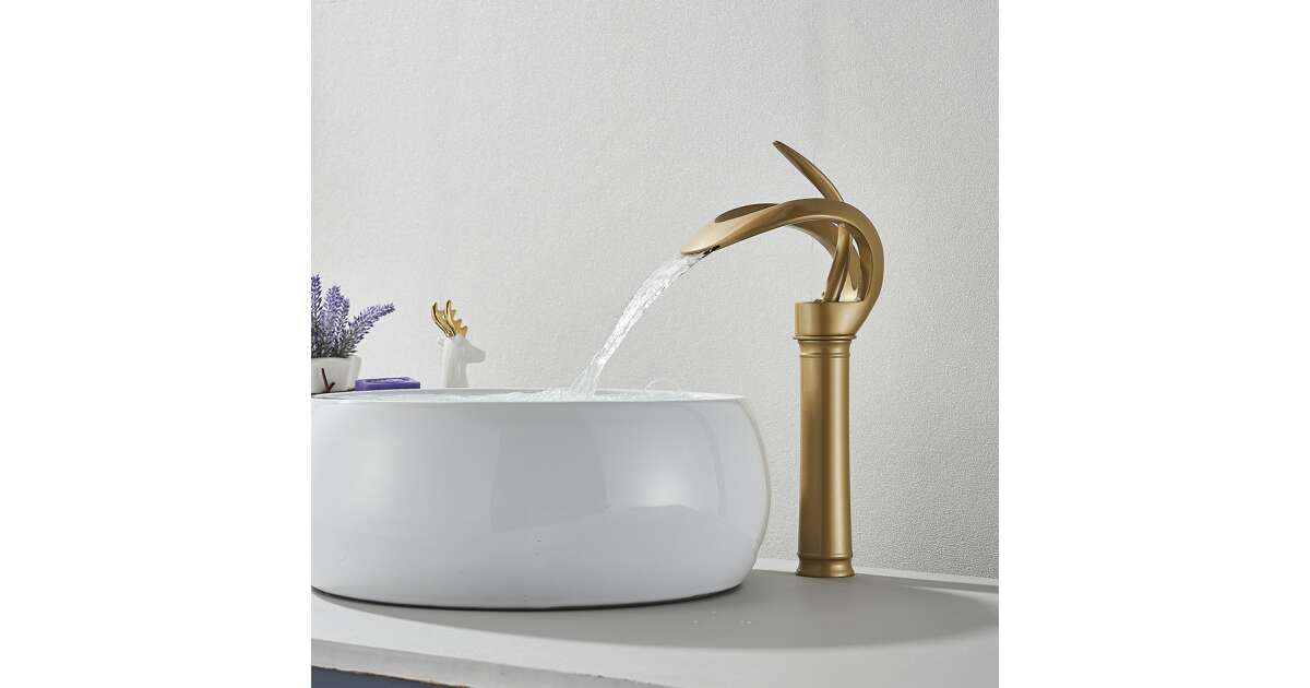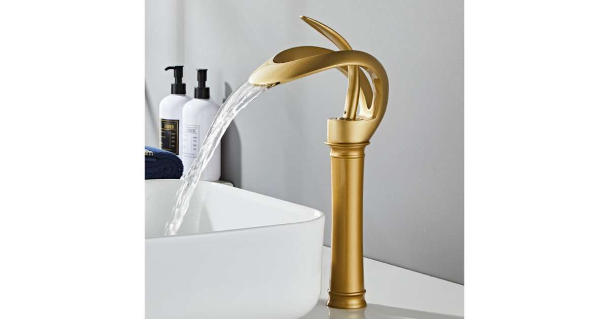 Acest robinet de chiuvetă auriu mat, în stil scandinav, îmbină stilul cu funcționalitatea. Modelul Blackswan M219, înalt de 34 cm, are un efect de cascadă impresionant, care îi va da băii tale un aspect unic. ✨