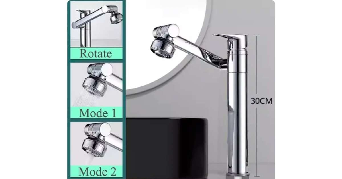 Acest robinet în stil scandinav, cu finisaj cromat înalt, este alegerea perfectă pentru baia ta modernă. Cu înălțimea de 30 cm și designul rotativ, ajunge ușor la orice punct al chiuvetei. Are două moduri de funcționare (normal și duș), astfel încât poți adapta debitul apei nevoilor tale. ✨