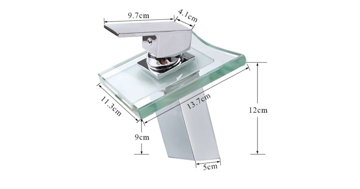 Baterie chiuveta baie cu led, Blackswan, Tip cascada M6, sticla securizata transparenta, dimensiuni 11.3 x 13.7 cm Descriere