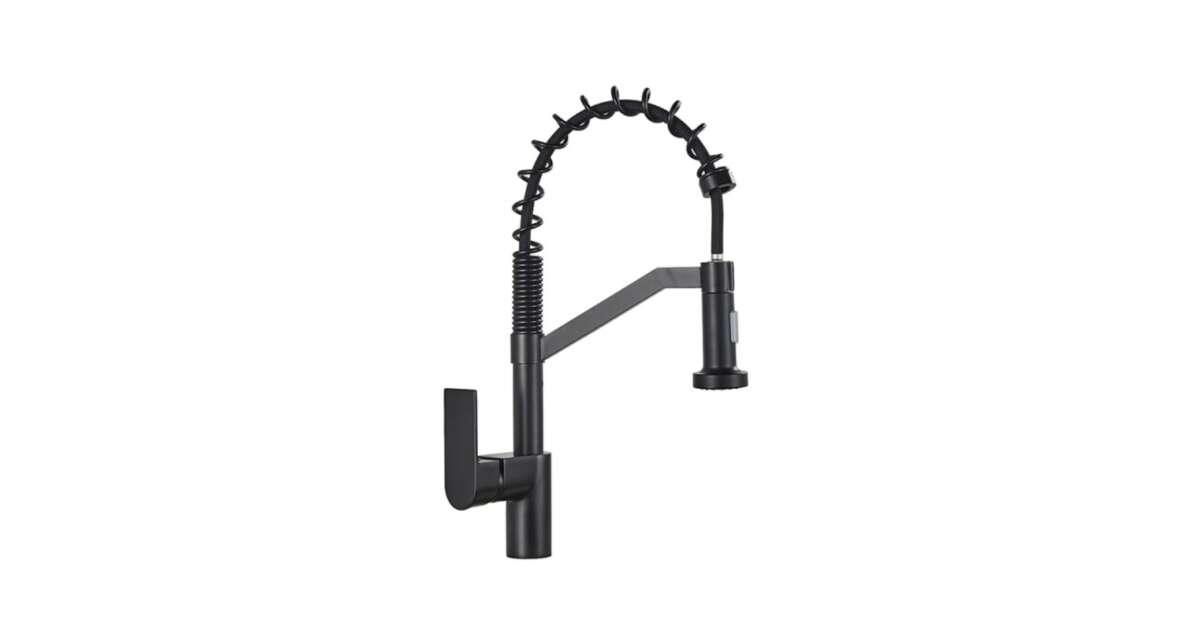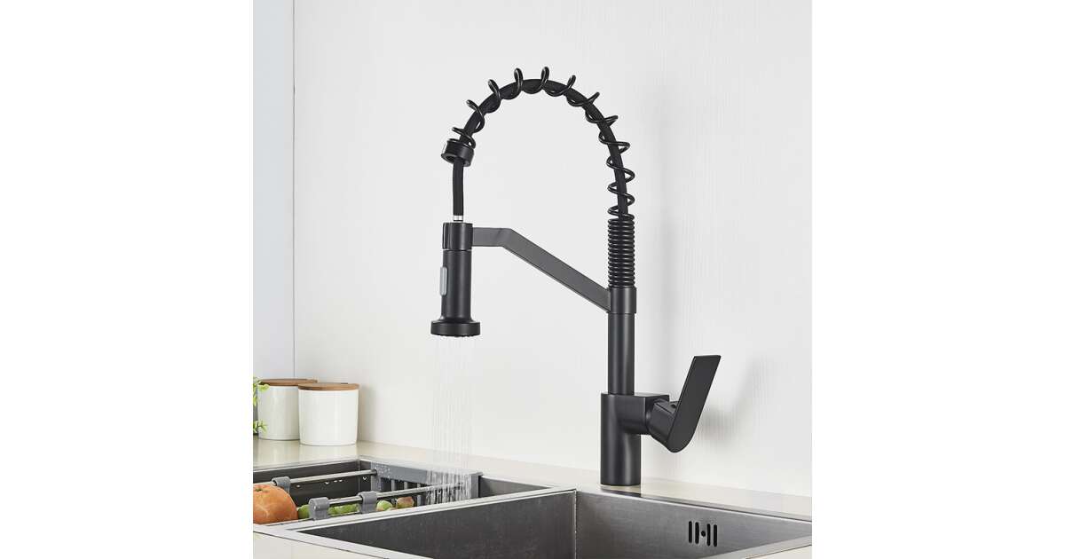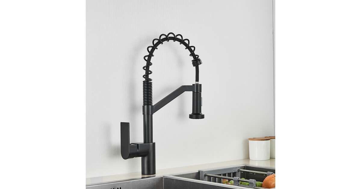 Acest robinet de bucătărie elegant, negru mat, este alegerea perfectă pentru o bucătărie modernă. Cu duza extensibilă rotativă la 360°, ajunge ușor în orice colț al chiuvetei.