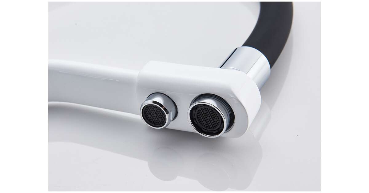 Acest robinet de bucătărie Blackswan M50 stilat și practic este alegerea perfectă pentru bucătăria ta modernă. Combinația de alb/crom îi conferă un aspect elegant, în timp ce ieșirea integrată pentru apă filtrată asigură apă mai sănătoasă și mai gustoasă.