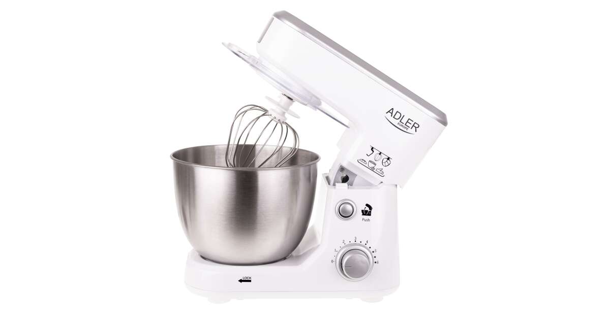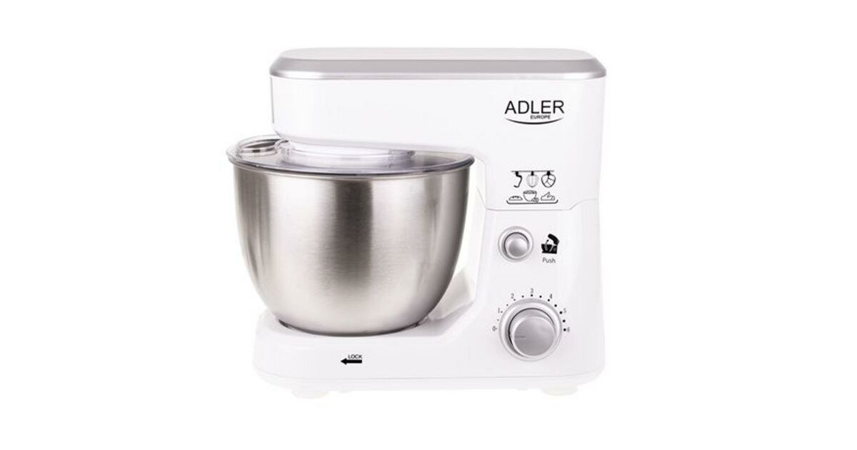 Mixer planetar Adler AD4216, 1000W, 6 viteze, capacitate bol 4l, Alb/Inox Descriere