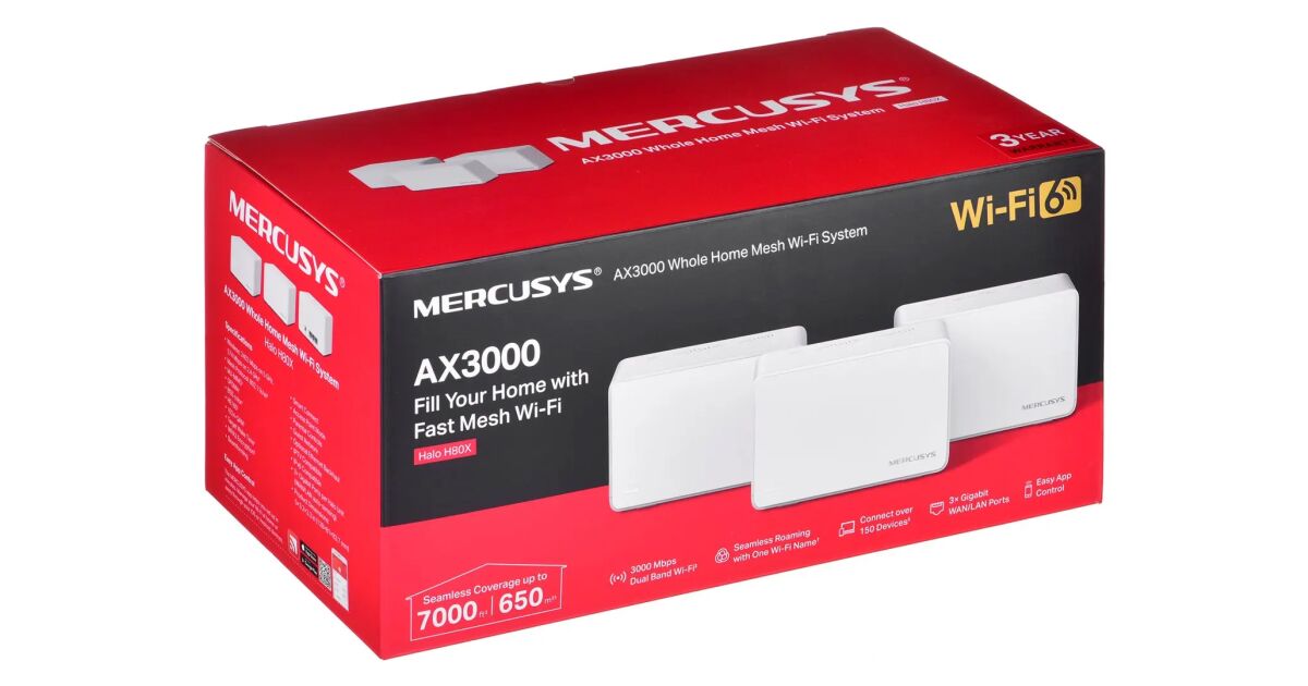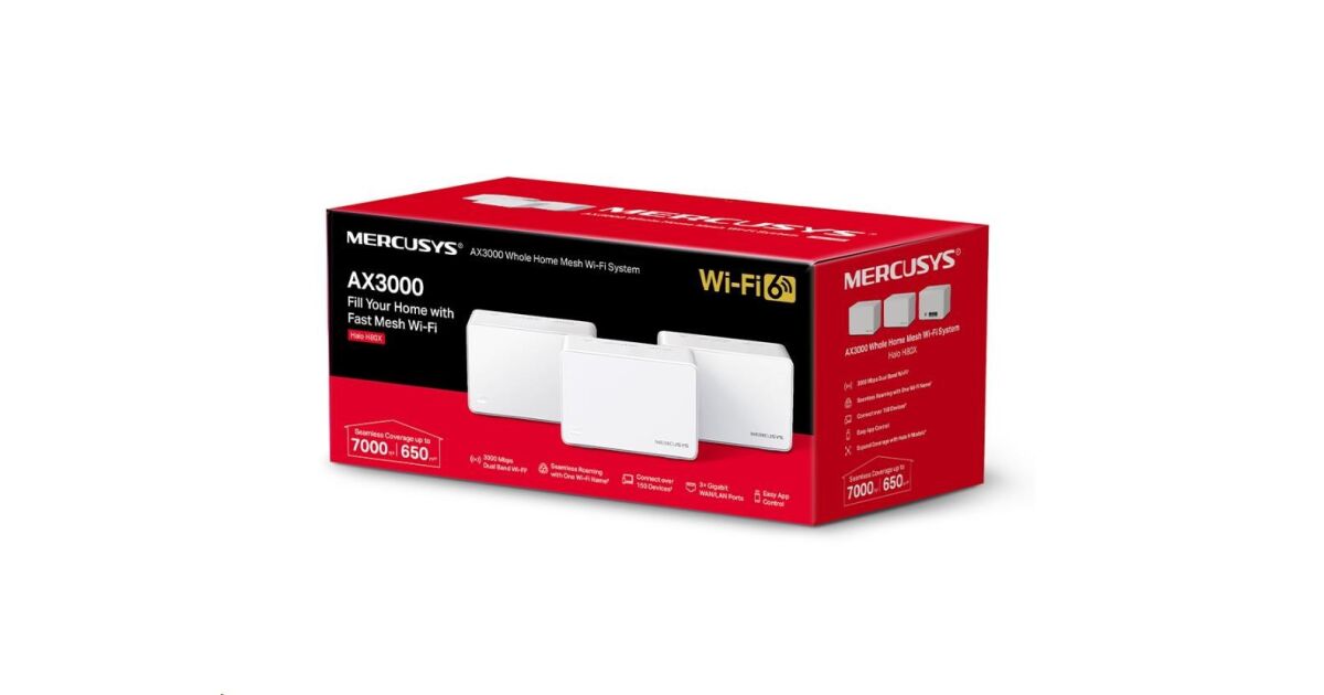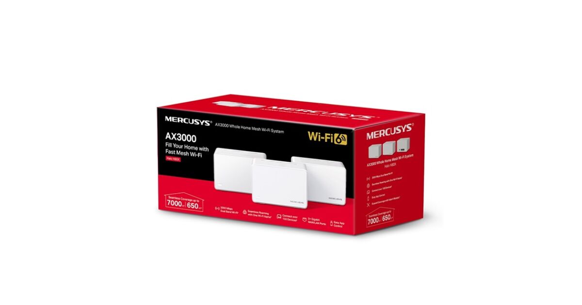 Sistem Mesh Wi-Fi Mercusys Halo H80X(3-pack), AX3000, Wi-Fi 6, Dual Band Gigabit, Acoperire pentru intreaga casa, Seamless Roaming, Control Parental (HALO H80X(3-PACK)) (HALO H80X(3-PACK)) cumpărați de la: