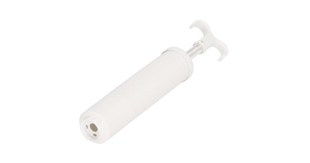 Puteti lua pompa pentru pungi de vid cu dvs. atunci cand calatoriti, deoarece nu ocupa mult spatiu - are doar 23 cm lungime. In ciuda dimensiunilor sale mici, pompa aspira aerul foarte repede, iar manerul sau este ideal pentru un adult. Strangeti filetul pompei la supapa prin care aspirati aerul din sac si folositi-o exact in acelasi mod ca si in cazul pompelor conventionale de admisie a aerului. Veti fi surprins de cat de simplu, rapid si convenabil este!