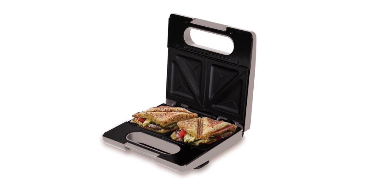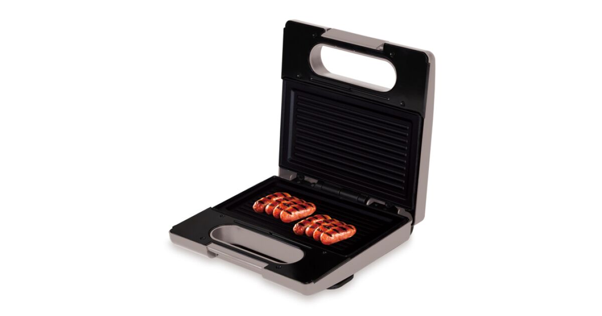 Caracteristici: - Material: aluminiu, bachelită - Putere: 780W - Tensiune: 220-240 V, 50/60Hz - Dimensiunea plăcii: 22,5*13 cm - Acoperire antiaderentă - Culoare: taupe mat - 3 tipuri de tăvi detașabile pentru prepararea diferitelor feluri de mâncare: grill, sandwich, waffle - Exterior rece la atingere - Lumini de pornire și de așteptare - Control automat al temperaturii, protecție la supraîncălzire - Picioare anti-alunecare - Pârghie de blocare de siguranță (închidere ușoară)