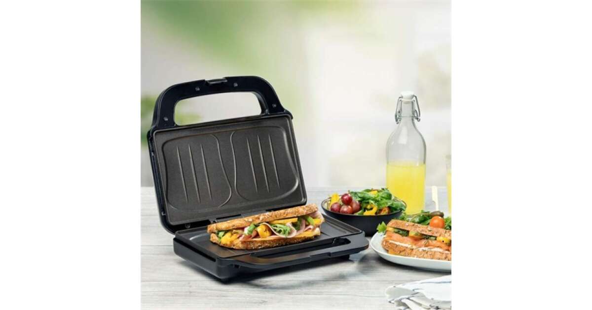 Bucură-te de micul dejun sau de cină cu acest aparat de sandvișuri calde practic și ușor de utilizat! Prepară sandvișuri calde clasice cu șuncă și brânză sau experimentează cu arome noi! 😋
