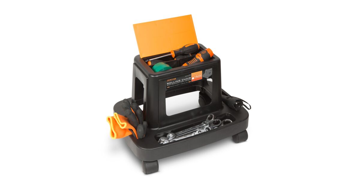 Scaun cu rotile și suport pentru scule: Simplifică-ți munca! 🛠️