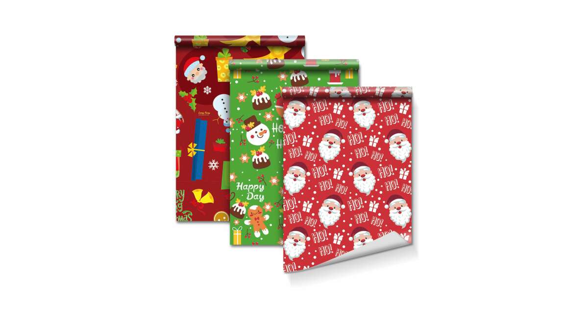 Acest set de 3 hârtii de împachetat cadouri de Crăciun e perfect pentru a-ți înfășura frumos cadourile de sărbători! Are trei modele diferite și vesele de Crăciun, ca fiecare cadou să fie unic.