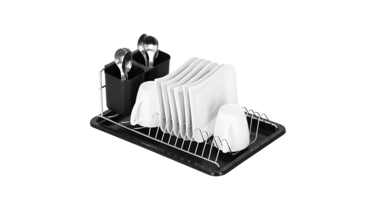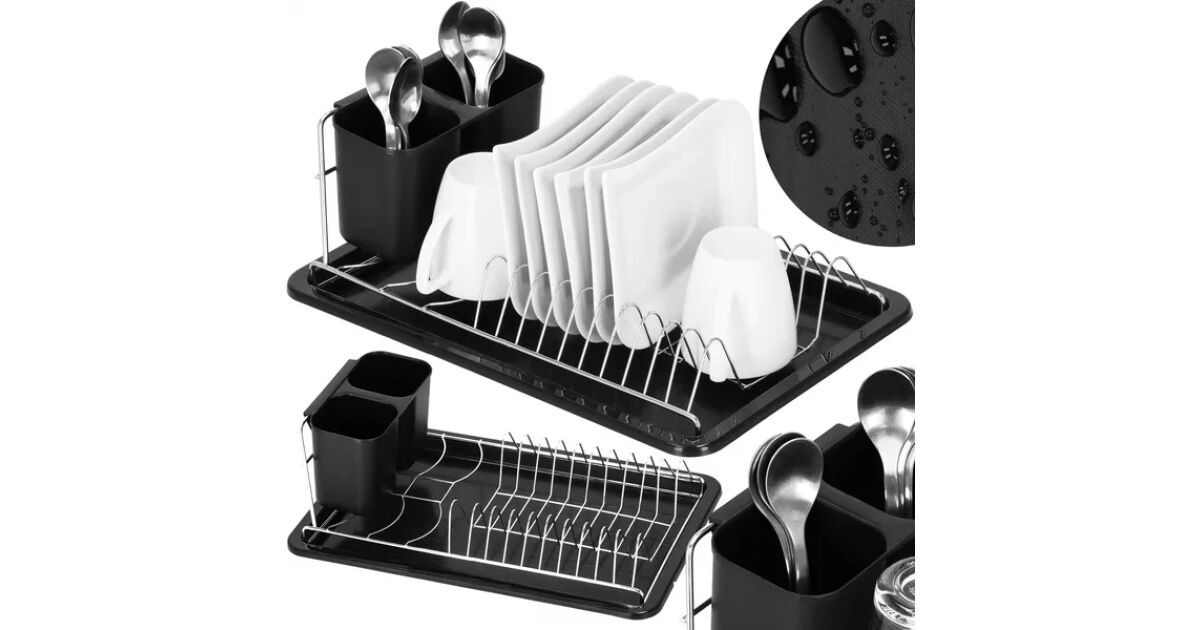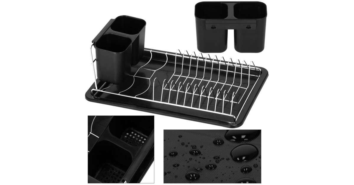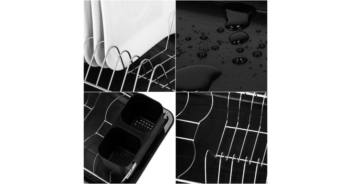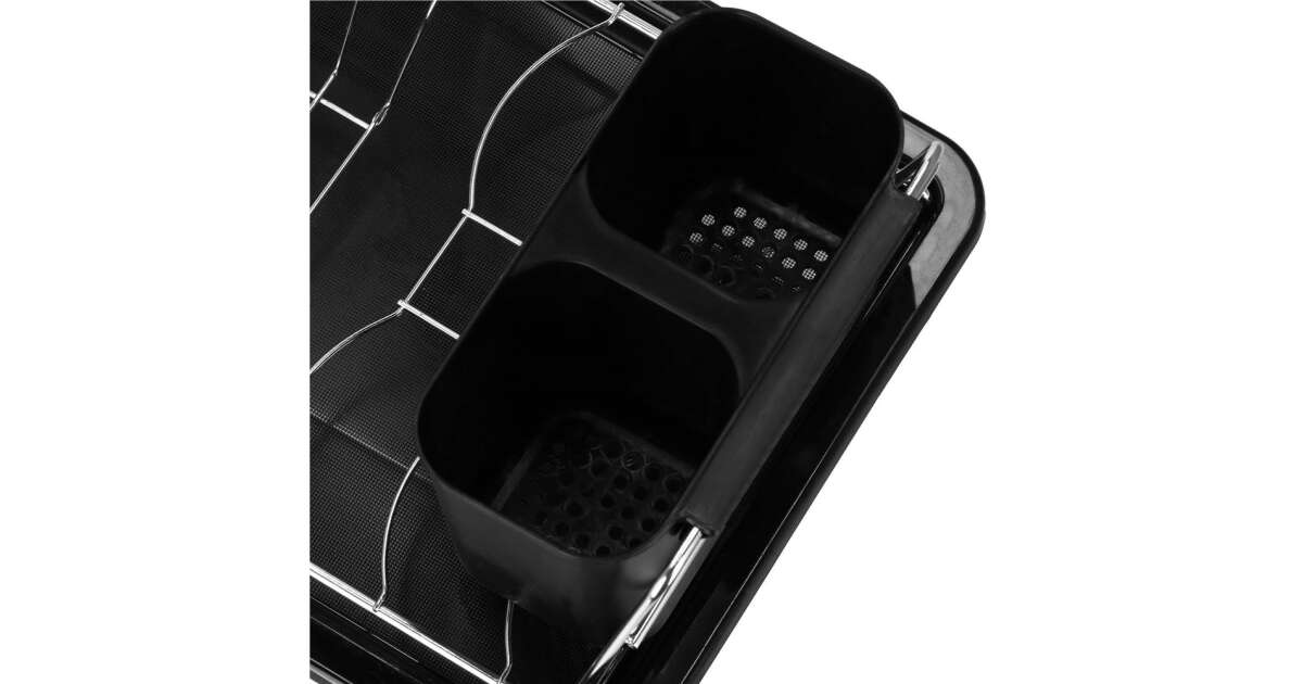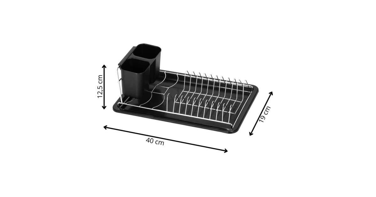 Uscator de vase cu suport tacamuri, din otel cromat, cu tava de scurgere, 40x19x13cm, negru Descriere