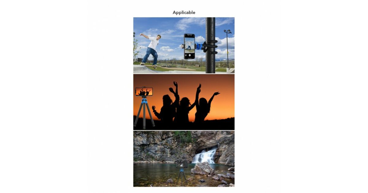 - Flexibil și stabil: Datorită picioarelor flexibile, poate fi fixat aproape oriunde, iar închiderea anti-alunecare asigură o stabilitate suplimentară. 🏞️
