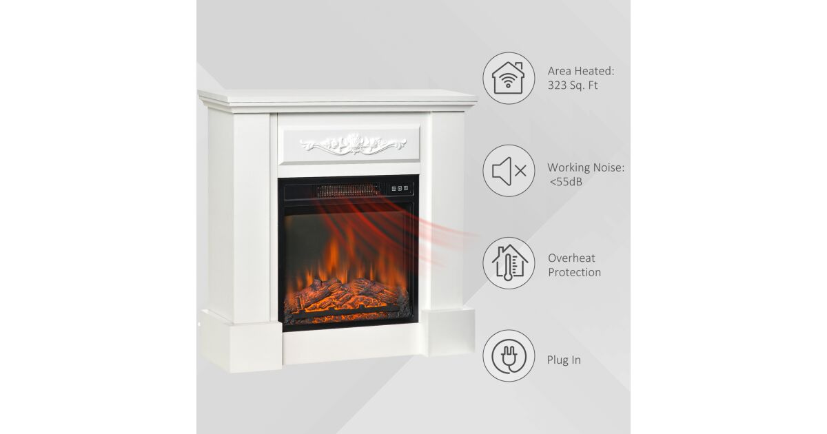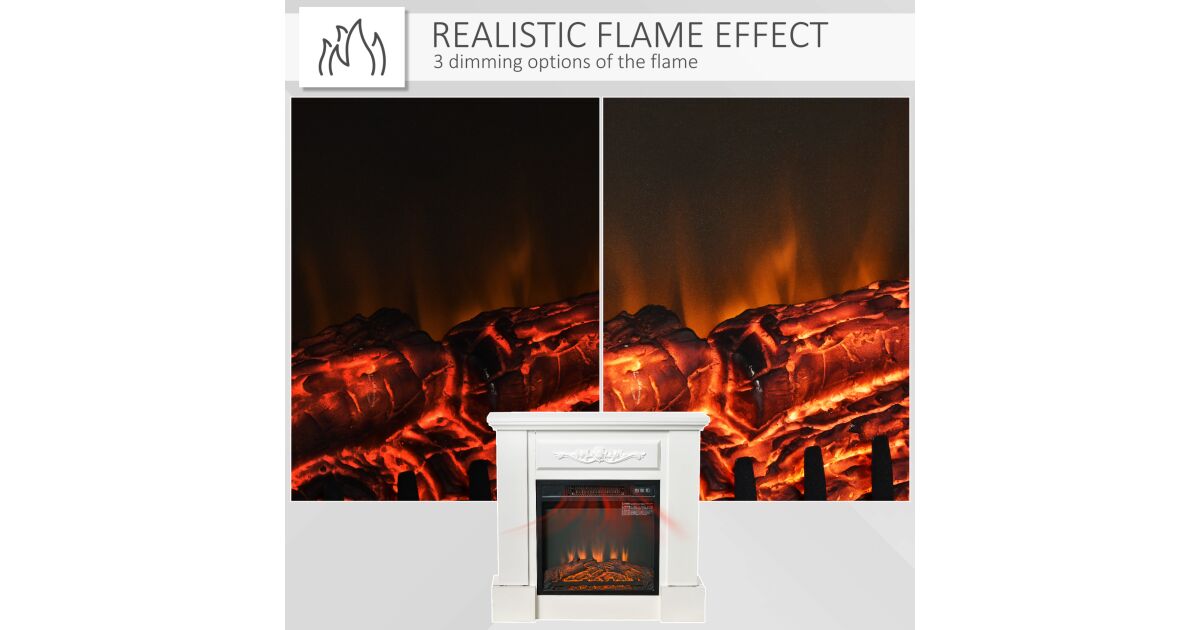-HOMCOM Șemineu Electric de Podea 1800W cu Efect de Flacără, Telecomandă, Timer și Temperatură Reglabilă, Alb Descriere