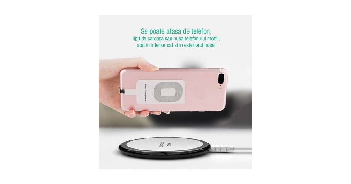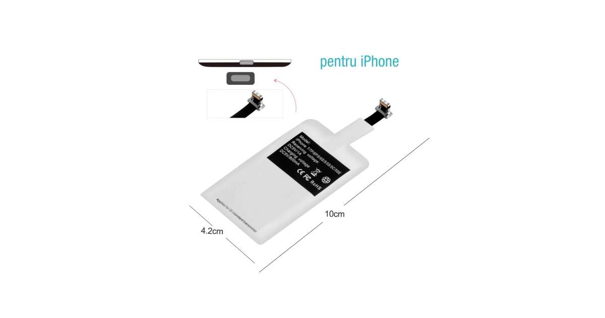 Incarcator Wireless Receiver iPhone, Envisage, Receiver Wireless 5V 1A, compatibil cu iPhone, model SGQ1, incarcare telefon, alb Descriere