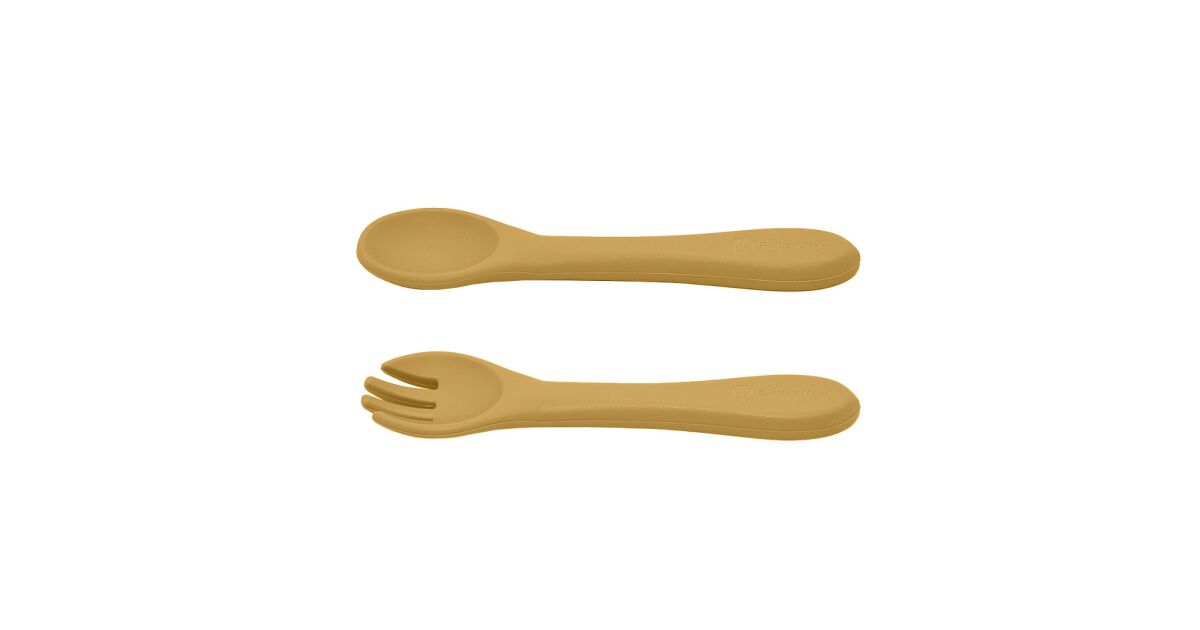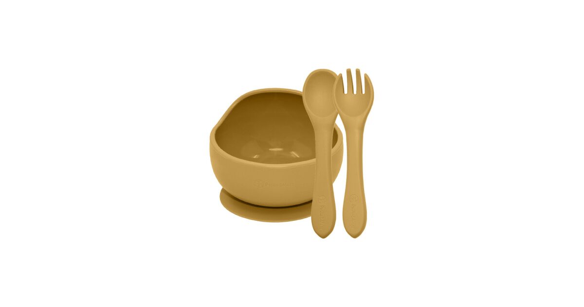 Petite & Mars Set 2 piese TAKE&MATCH din silicon castron + tacâmuri Ocru intens 6 luni+ Descriere