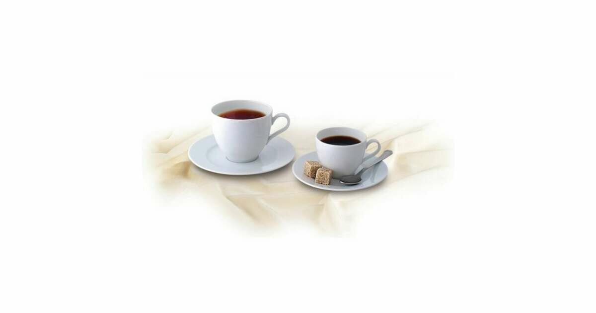 Acest set de cafea moka din ceramică Rotberg Basic, la preț redus, este alegerea perfectă pentru iubitorii de cafea sau ceai. Setul include două cești și farfurioare elegante, din porțelan alb.