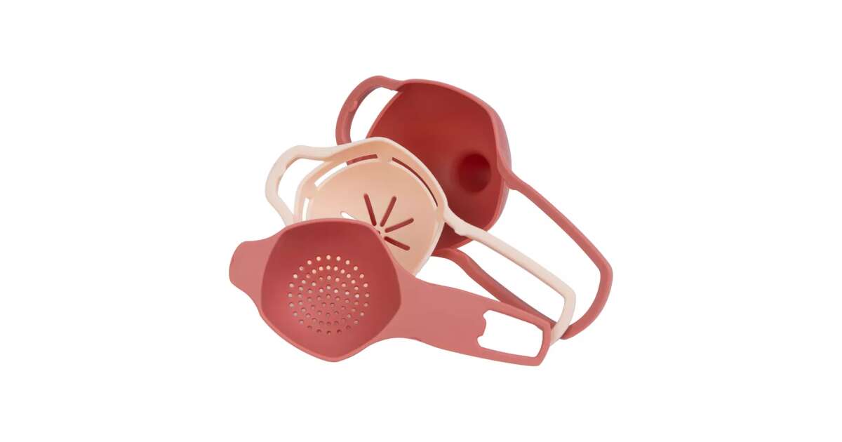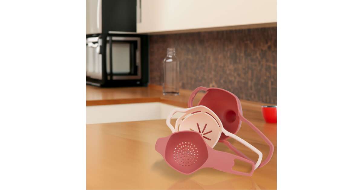 Acest set practic, care economisește spațiu, combină trei instrumente esențiale de bucătărie într-unul singur: un infuzor de ceai, un separator de ouă și o pâlnie. Datorită designului său compact, este ușor de depozitat și îl puteți folosi în gătitul de zi cu zi.
