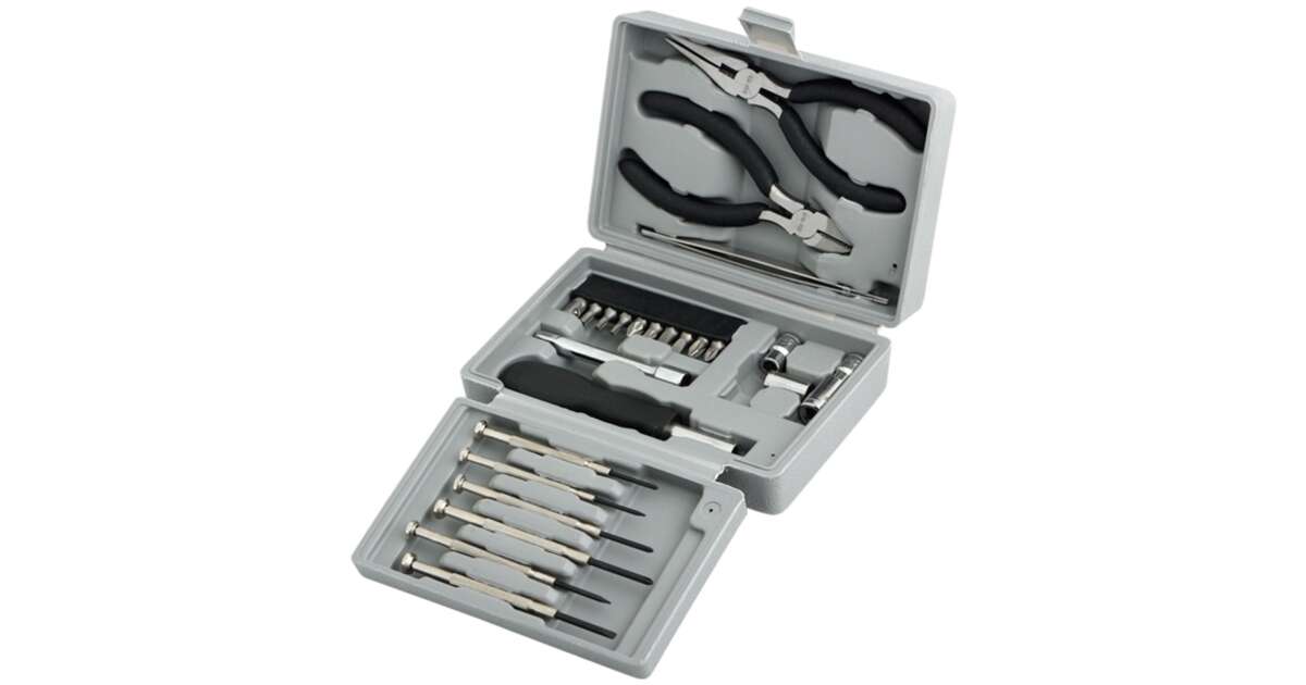 Uneltele sunt depozitate într-o cutie practică din plastic, ușor de transportat, astfel încât să le ai mereu la îndemână atunci când ai nevoie de ele. Dimensiunile cutiei: 10,8 cm lățime, 15,5 cm lungime și 5 cm înălțime.