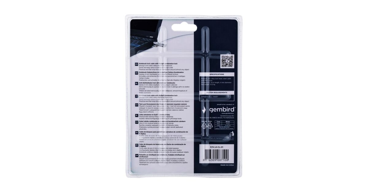 Acest cablu de siguranță cu combinație din 4 cifre Gembird LK-CL-01 este soluția ideală pentru a-ți proteja laptopul când călătorești sau îl folosești în locuri publice. Cablul de 1,8 metri oferă suficientă lungime pentru o fixare sigură, în timp ce combinația din 4 cifre permite deschiderea și închiderea rapidă și ușoară.
