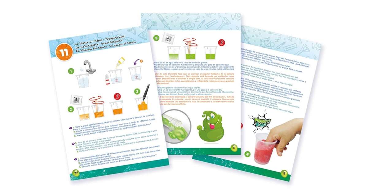 - Instrucțiuni colorate și detaliate: Pași ușor de urmat pentru experimente reușite.