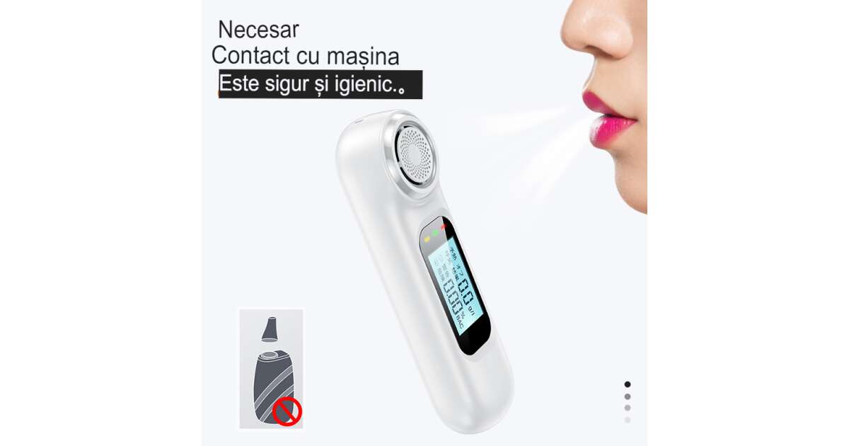 Etilotest AEC AM01 , fara contact, Nu necesita rezerve, Acuratete +/- 0.01% BAC, Display LCD color, Autonomie baterie 200 testari, Indicator risc, 8x2x1.5 cm, alb Descriere