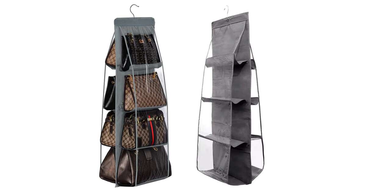 Adio haos în dulap! Acest organizator practic cu 8 buzunare transparente te ajută să-ți pui în ordine gentile, pantofii și alte accesorii. Datorită umerașului metalic, se prinde ușor în dulap sau dressing.