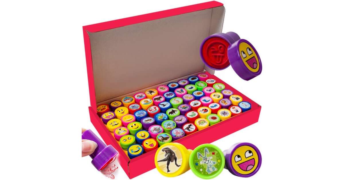 -Set de ștampile de 60 de piese pentru copii, modele de animale și fețe zâmbitoare, Kruzzel, multicolore, non-toxice Descriere