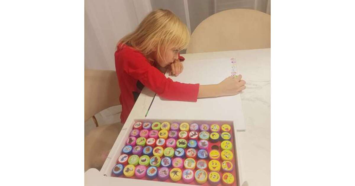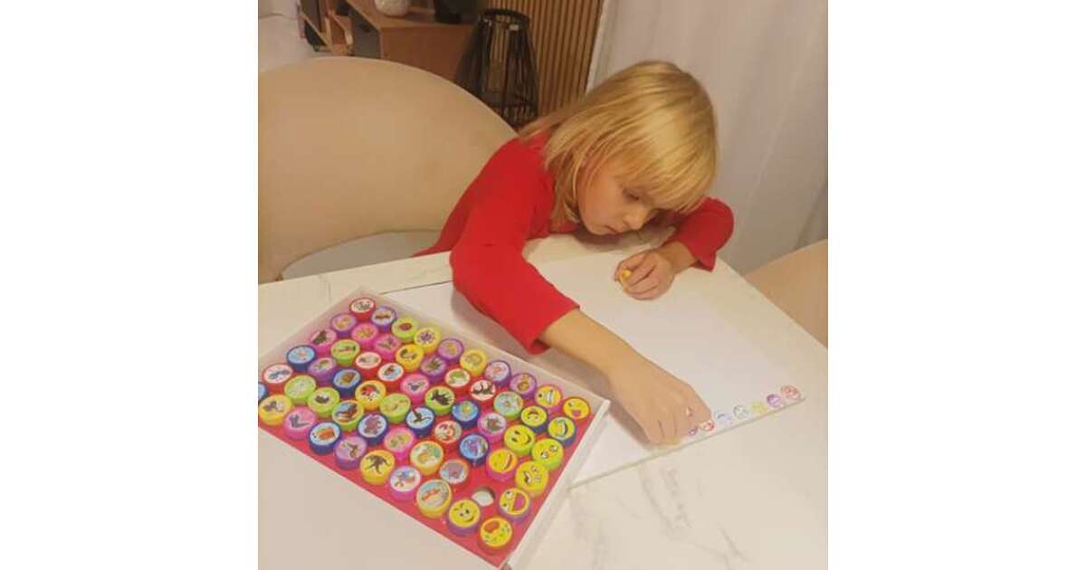 Acesta este un set de 60 de timbre colorate care le oferă celor mici distracție pentru ore întregi! Pachetul conține timbre cu animale vesele și fețe zâmbitoare, cu care copiii își pot decora creativ caietele, cărțile poștale, invitațiile și multe altele. Timbrele sunt realizate cu cerneală sigură, non-toxică, astfel încât copiii le pot folosi fără griji.