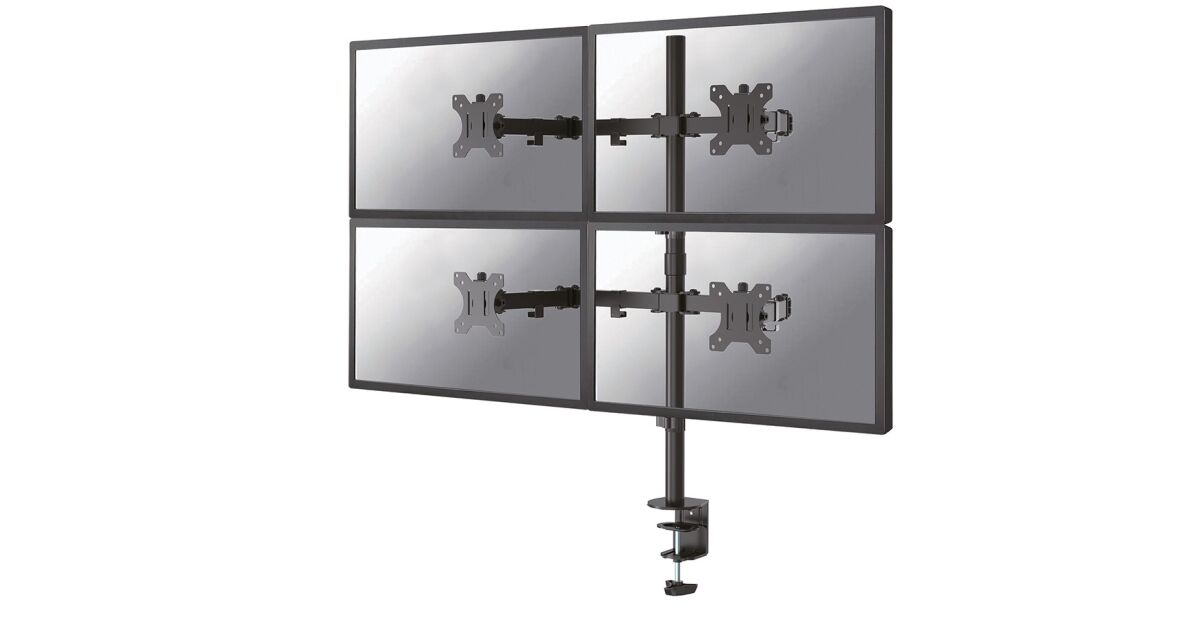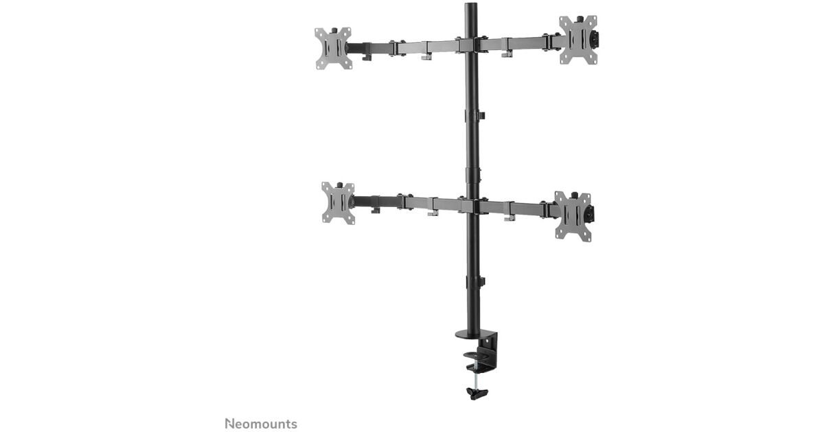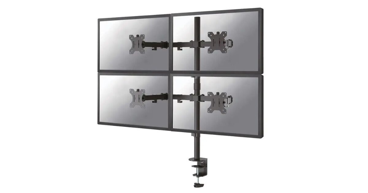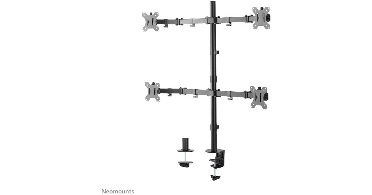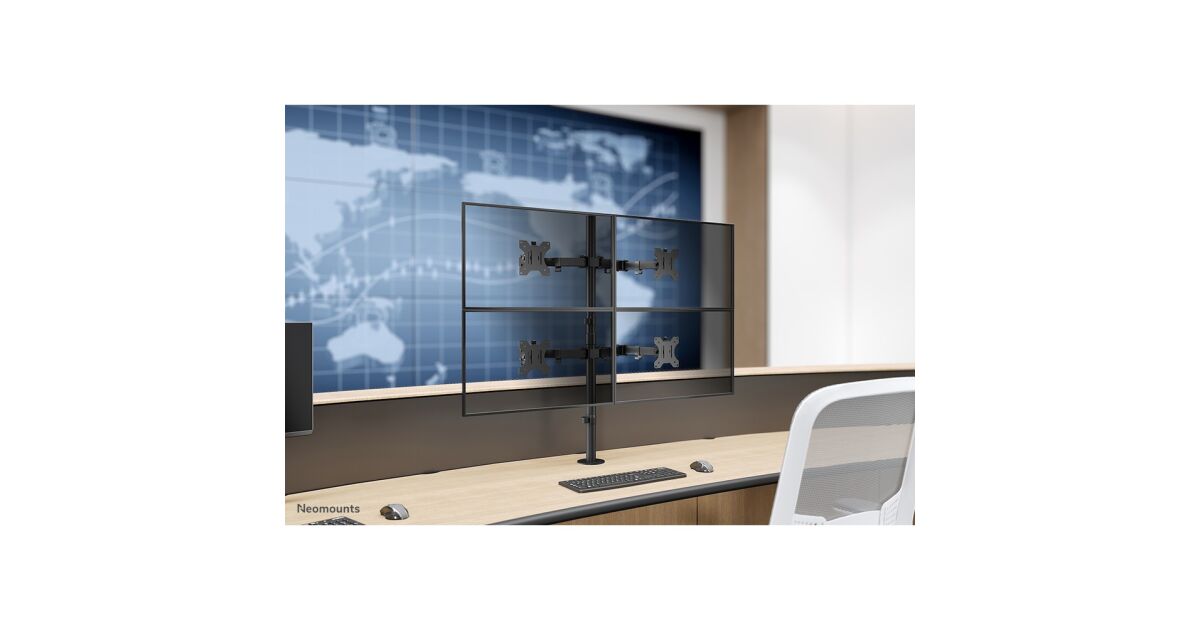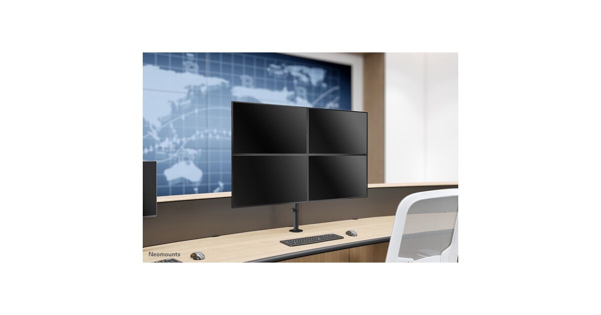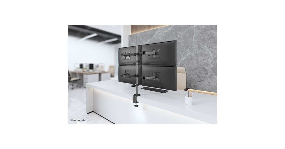 Suportul de birou pentru patru monitoare NewStar Neomounts: Perfect pentru un spațiu de lucru cu mai multe ecrane 🖥️