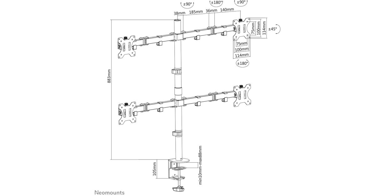 Graficieni, programatori, editori sau oricine apreciază avantajele unui spațiu de lucru cu mai multe ecrane. Cu suportul de birou NewStar Neomounts FPMA-D550D4, îți poți desfășura activitatea confortabil și eficient!