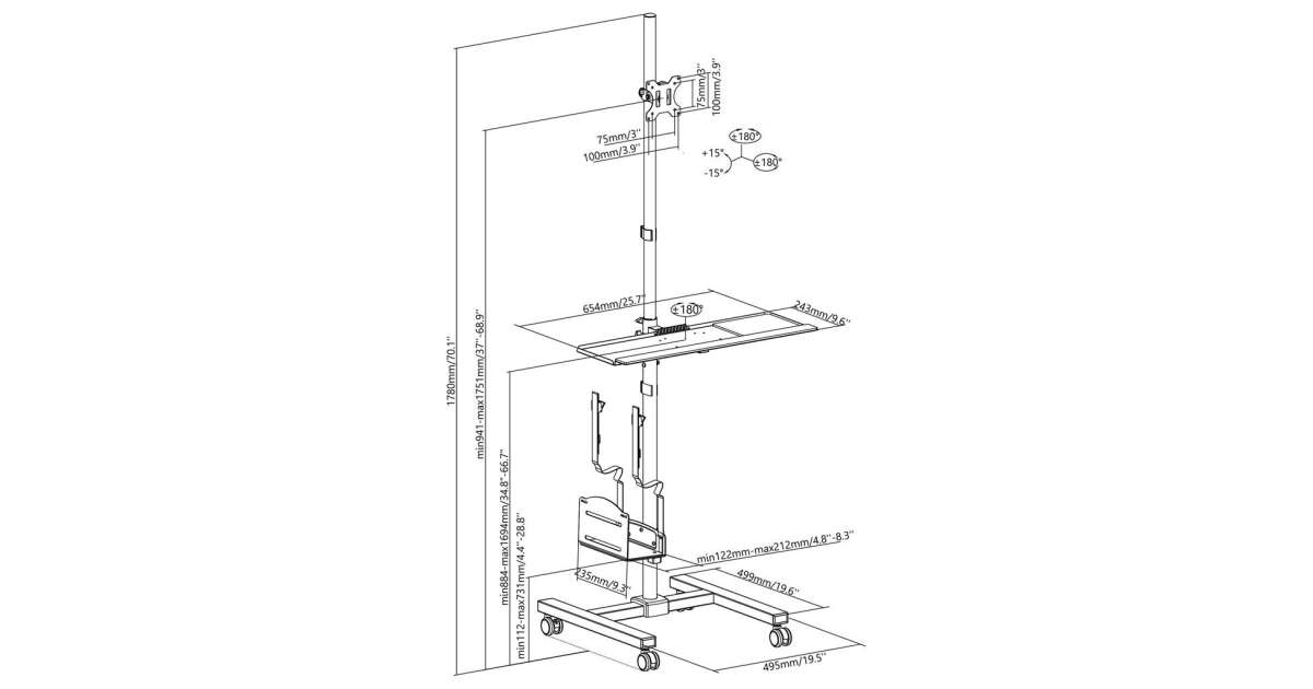 Stand, cărucior, stație de calculator mobil pe roți Maclean MC-793 max 20kg max 17"-32" VESA: 75x75,100x100