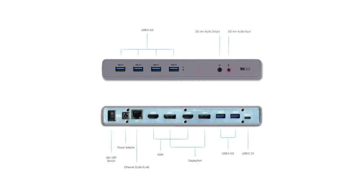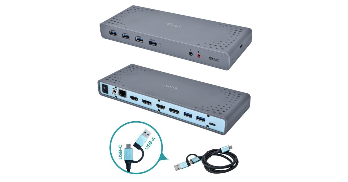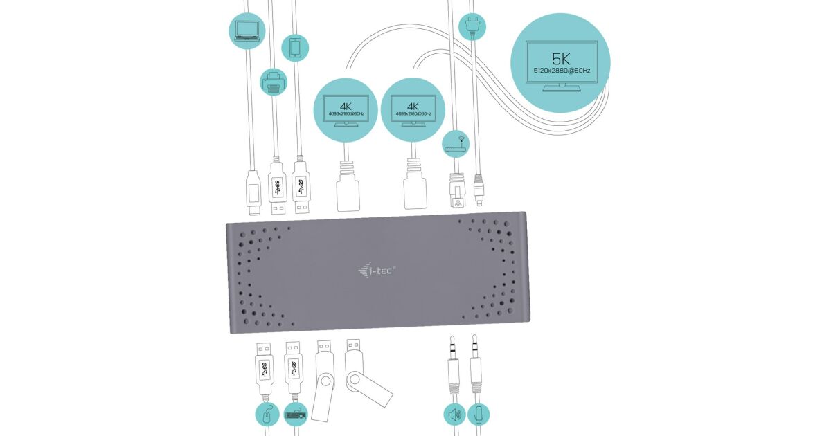 i-tec CADUAL4KDOCK Stație de andocare USB-C: Două monitoare cu rezoluție 5K/4K și mai multe porturi USB