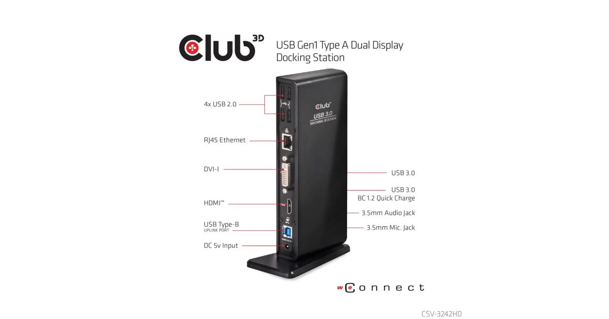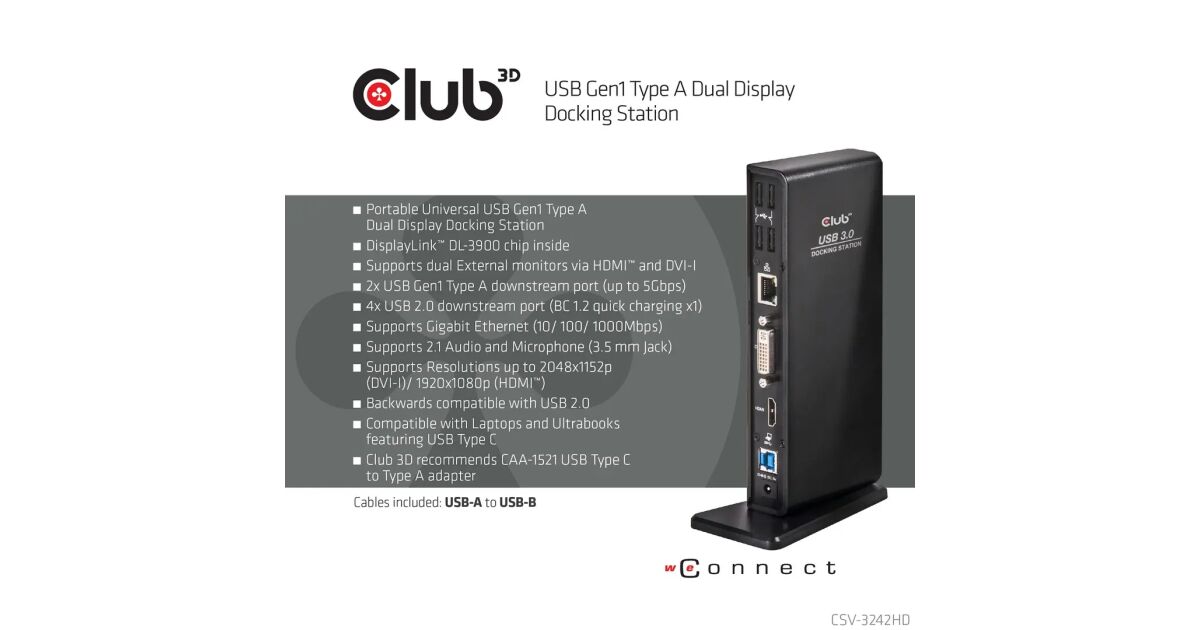 CLUB3D SenseVision USB3.0 Dual Display Docking Station (CSV-3242HD) (CSV-3242HD) Descriere