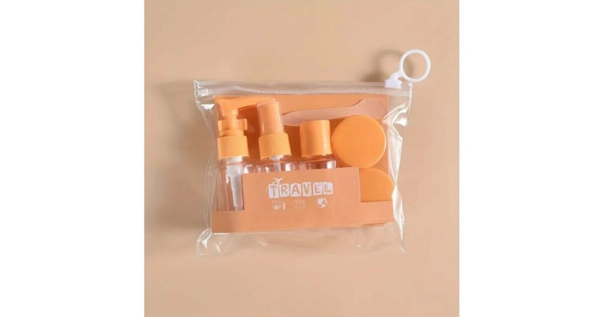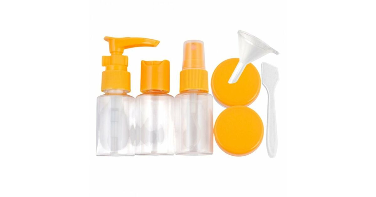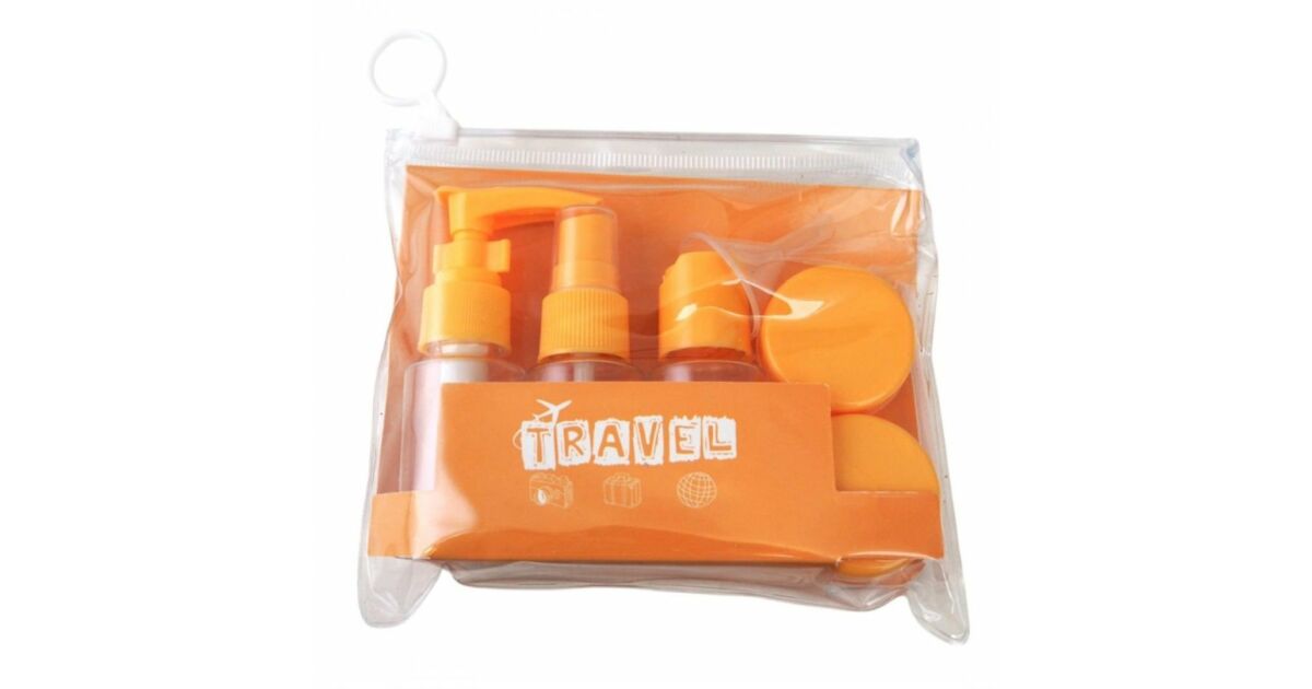 Set 7 în 1 recipiente, reutilizabile, pentru călătorii, culoarea portocaliu, eCarla, KS122POM Descriere
