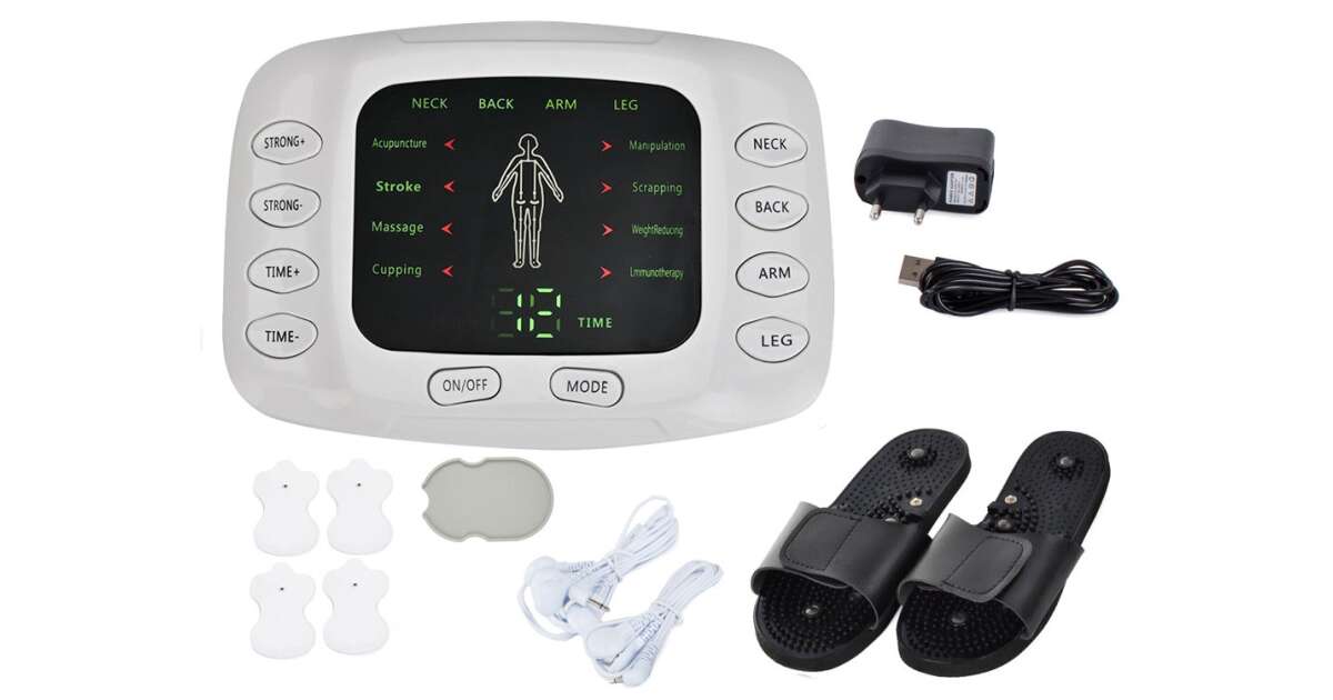 ELECTRO-STIMULATOR PENTRU MUSCHI SI NERVI FLAPPERS DE MASAJ Electrostimulatorul pentru muschi este un dispozitiv terapeutic conceput pentru uz casnic. Aparatul de electrostimulare poate fi folosit în sport, reabilitare, îngrijire corporală și îngrijire a frumuseții. Dispozitivul poate fi operat și cu bateriile introduse și poate folosi și alimentarea de la rețea prin cablul și sursa de alimentare incluse. Reduce eficient grăsimea sau elimină celulita. De asemenea, ajută la ameliorarea durerii. Prin urmare, electrostimularea mușchilor este un tratament extrem de util în contextul recuperării după multe leziuni. Sportivii apreciază instrumentele pentru o mai bună recuperare și pentru a elimina durerile și durerile care au fost foarte enervante a doua zi după antrenament. Înainte de a porni dispozitivul, electrozii trebuie lipiți de corp. Electrostimulatorul este in intervalul de intensitate 1-15, iar durata masajului este in intervalul 5-30 minute ------ Setul include o pereche de papuci care actioneaza ca electrozi pentru picioare, astfel incat sa iti poti masa picioarele obosite dupa o zi obositoare de munca. Electrozii trebuie lipiți de corp în zonele selectate: ✅ Buton GÂT - masaj gât ✅ Buton BACK - masaj spate ✅ Buton BRAT - masaj mâini ✅ Buton PICIOARE - masaj picioare ✅ Folosind butoanele STRONG+ și STRONG- - reglați intensitatea masajului ✅ Folosiți butoanele TIME+ TIME- - reglați durata masajului ✅ MODE - pentru a selecta durata masajului MODE UTILIZAREA DISPOZITIVULUI: ✅ Relaxare? si intensitatea masajului. Lungime: 12 cm ✅ Lățime: 17 cm DIMENSIUNI ELECTROD: ✅ Lungime: 8 cm ✅ Lățime: 5,5 cm ✅ Diametru conector: 0,3 cm ##SIGURANȚĂ: ✅ Înainte de a stabili locul de aplicare a electrozilor, nu uitați de regulile generale vă permit să amplasați electrozii în sens invers: impulsul trece prin creier ✅ Pieptul este opus pe părțile laterale, astfel încât impulsul se deplasează prin mediastin ✅ Direct pe răni ✅ Direct deasupra sinusului carotidian (partea medie anterolaterală a gâtului) ✅ Pe pleoapă și deasupra orbitei ✅ Direct pe zonele inflamate sau infectate ✅ Pe gura groasă ✅ Pe membrana groasă ✅ Pe interiorul mucoasei ✅ ✅Pentru siguranța dumneavoastră, consultați-vă medicul cu privire la starea dumneavoastră Atenție: dispozitivul nu poate fi utilizat de către pacienții cu stimulatoare cardiace, pompe de insulină, paciente cu tumori maligne, sau femeile însărcinate sau care au menstruație. SETUL INCLUDE:☑️ Set nou din fabrică pentru masaj, electrostimulare a mușchilor☑️ Papuci de acupunctură☑️ Alimentare☑️ Baterii 3x AA (accesoriu)☑️ Manual de utilizare în limba engleză☑️ Ambalaj original