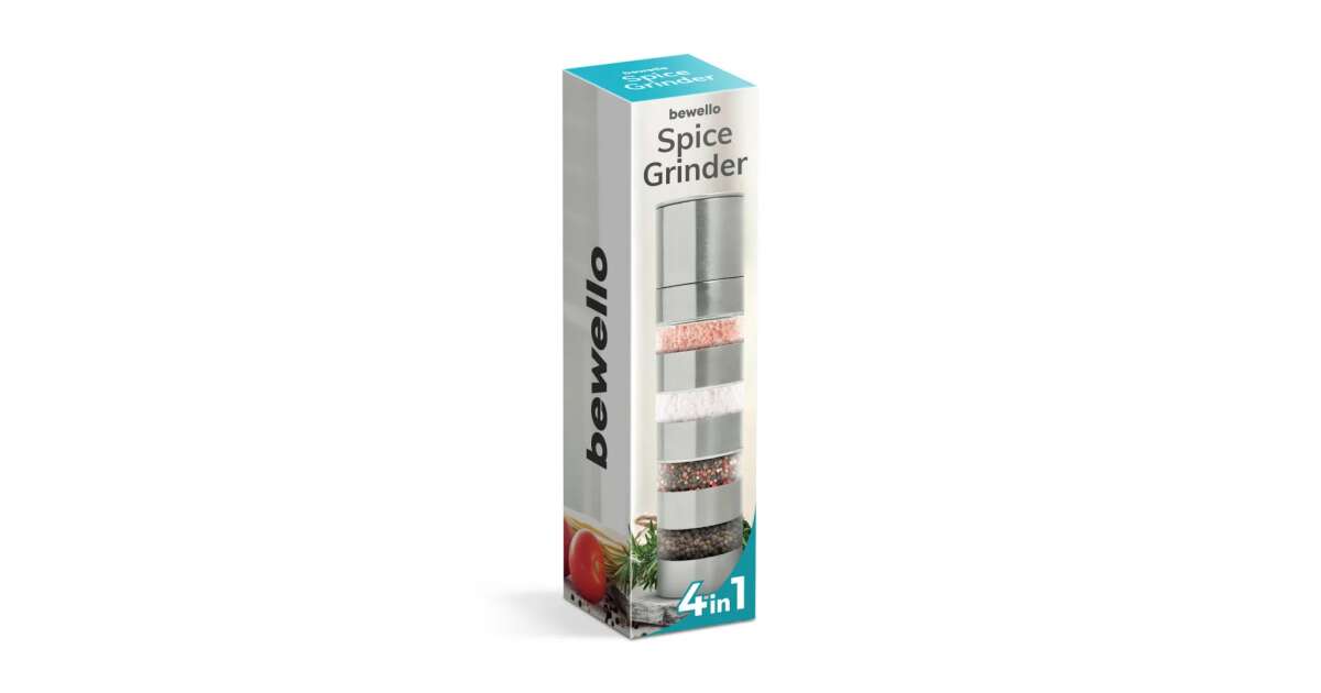 Această râșniță de condimente 4 în 1 din oțel inoxidabil îți va revoluționa gătitul! Poți depozita patru condimente diferite simultan și le poți adăuga cu ușurință folosind râșnița integrată. Gradul de măcinare este reglabil infinit, astfel încât măcinarea va fi întotdeauna perfectă.