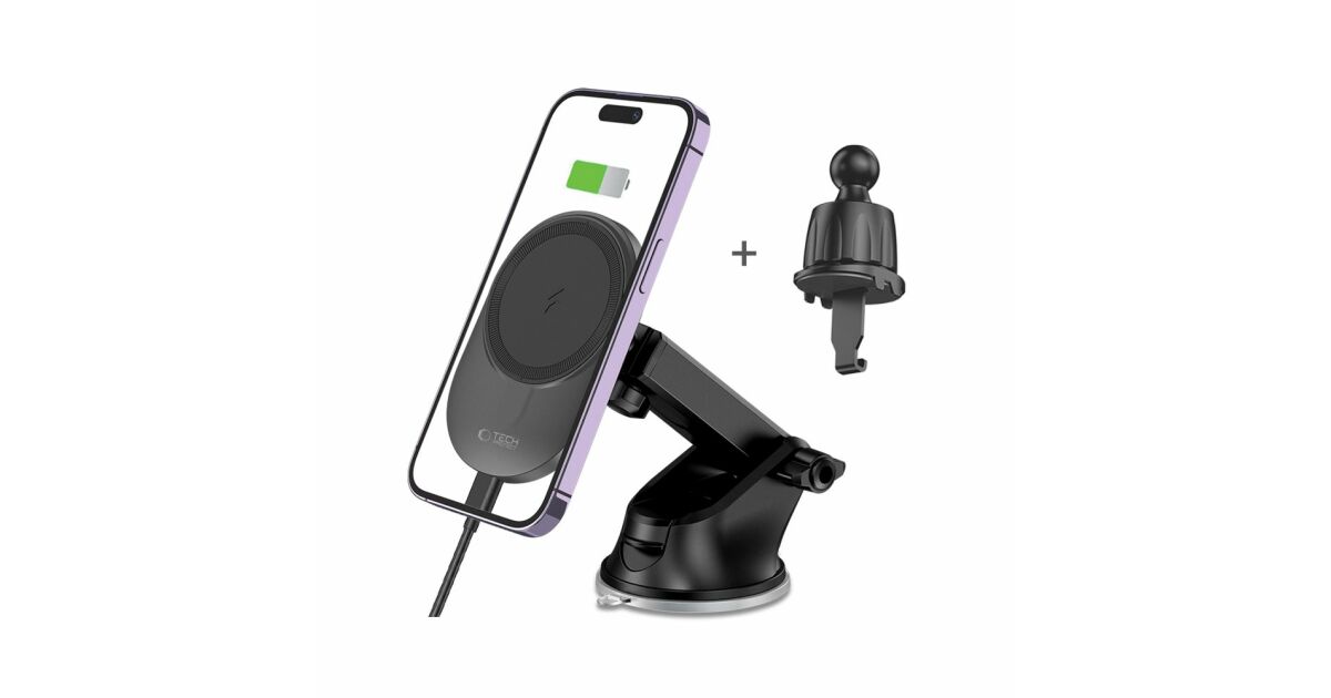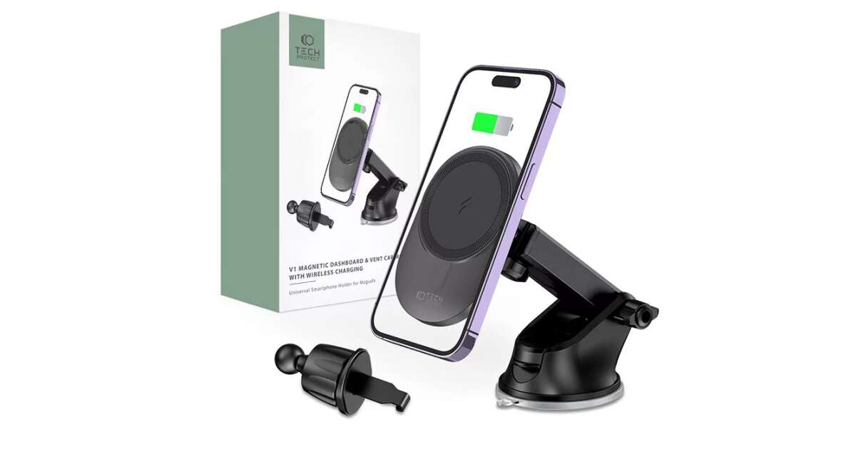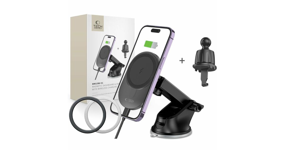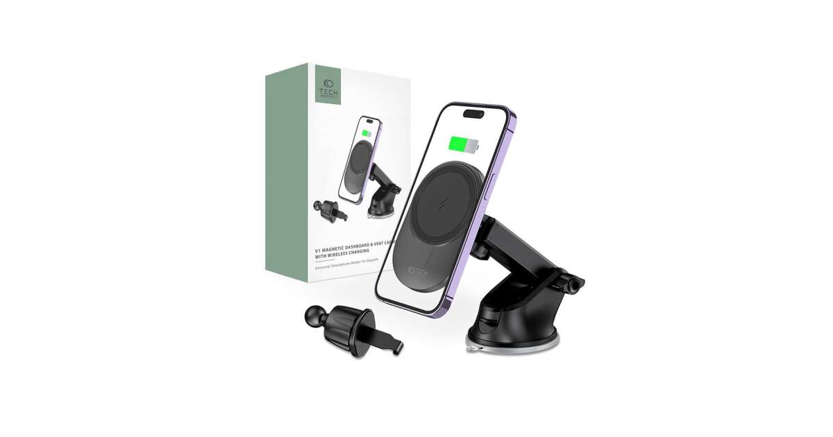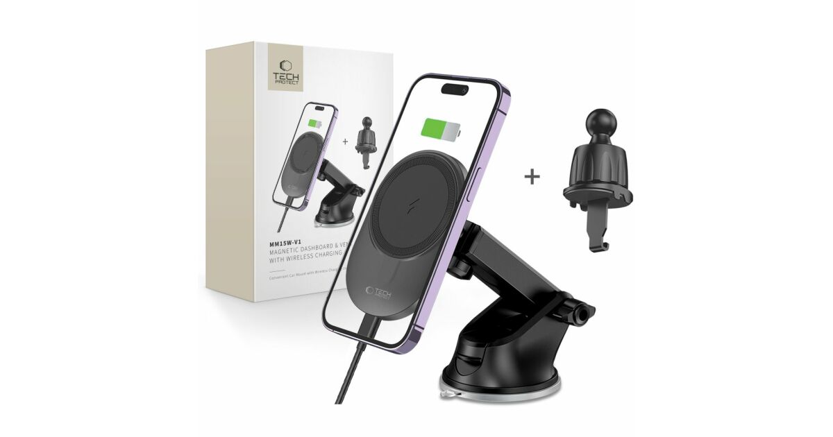 Suport auto Tech-Protect V1 Magnetic 2 in 1, Compatibil MagSafe, Dashboard/Air Vent Mount, 15W, Cablu USB-C 1m inclus, Negru Descriere