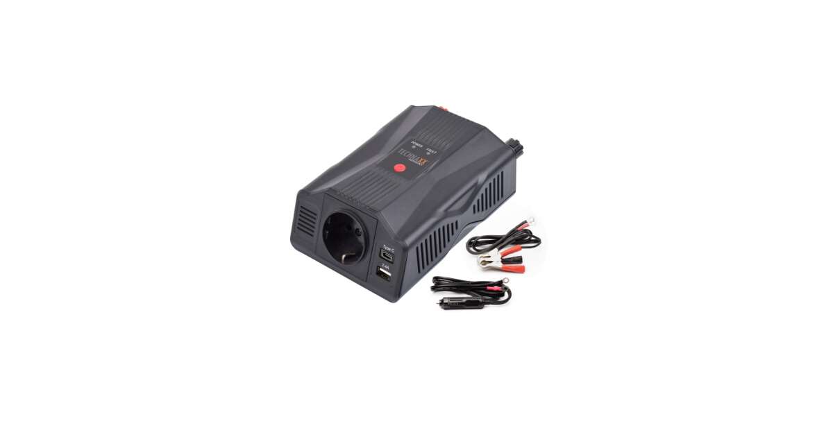Invertor de tensiune Technaxx TE24, 300W, alimentare 12V, iesire 230V, USB-A, USB-C, negru Descriere