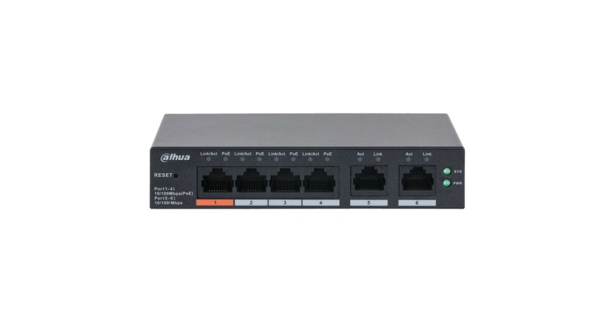 Switch-ul PoE Dahua CS4006-4ET2ET-60 oferă o soluție fiabilă și rentabilă pentru alimentarea dispozitivelor PoE și administrarea rețelei. 🏢