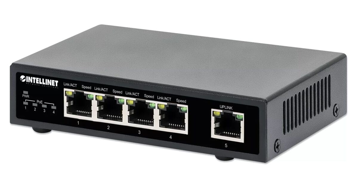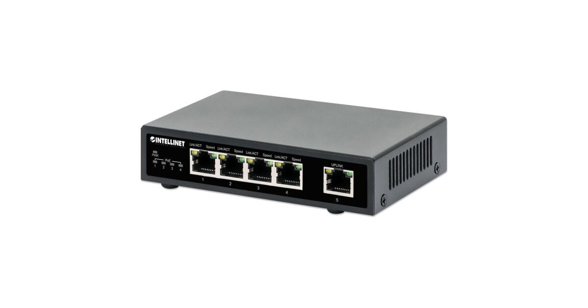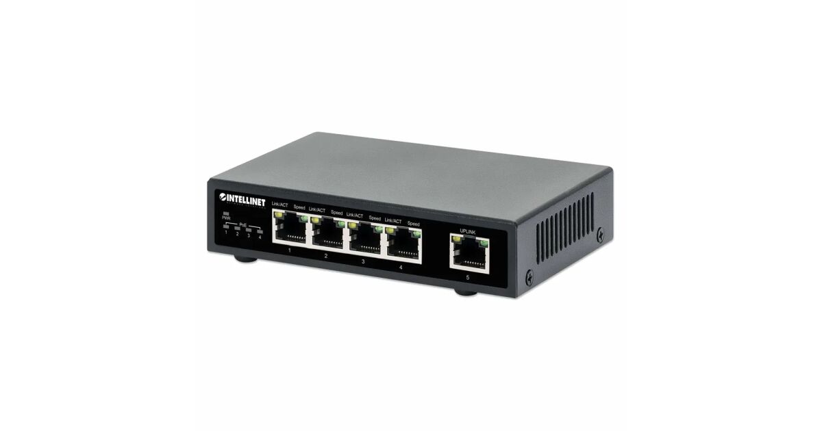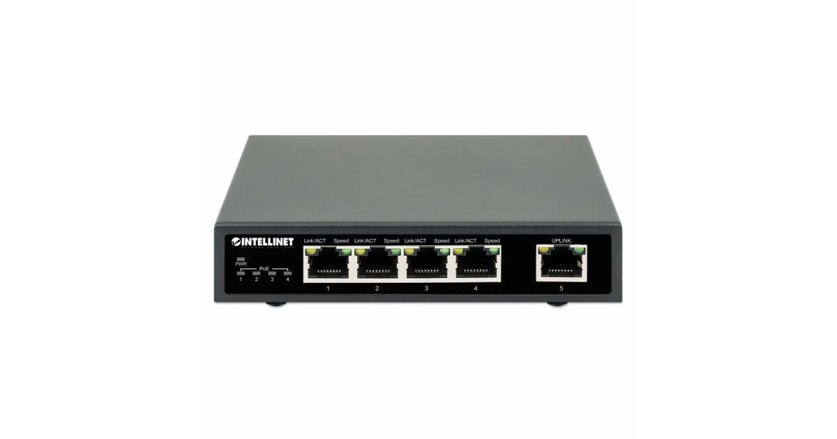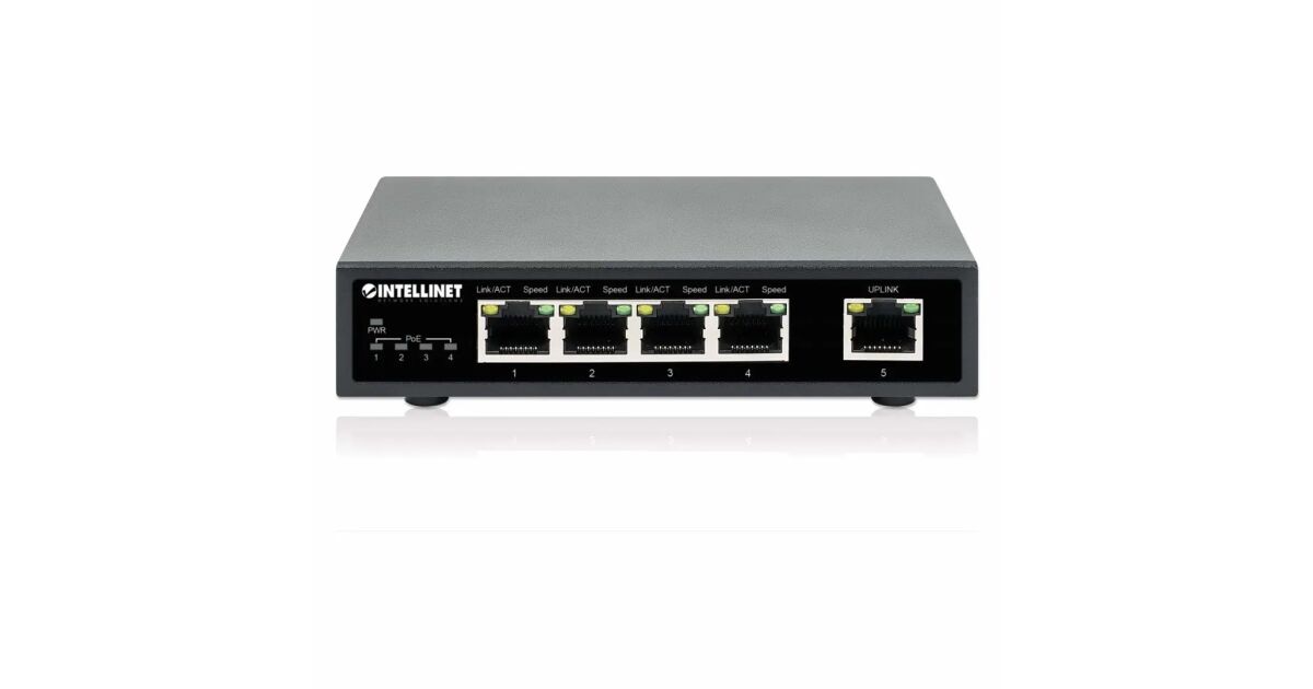 Switch Gigabit PoE+ cu 5 porturi Intellinet: Construiește-ți rețeaua și alimentează dispozitivele, totul simplu! 🚀