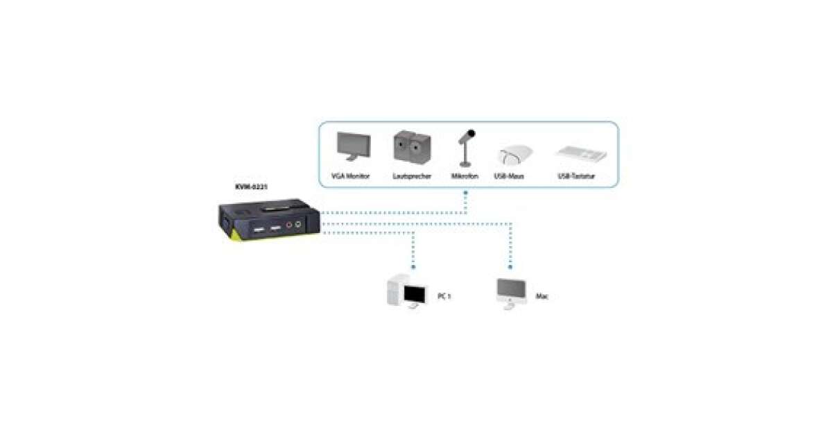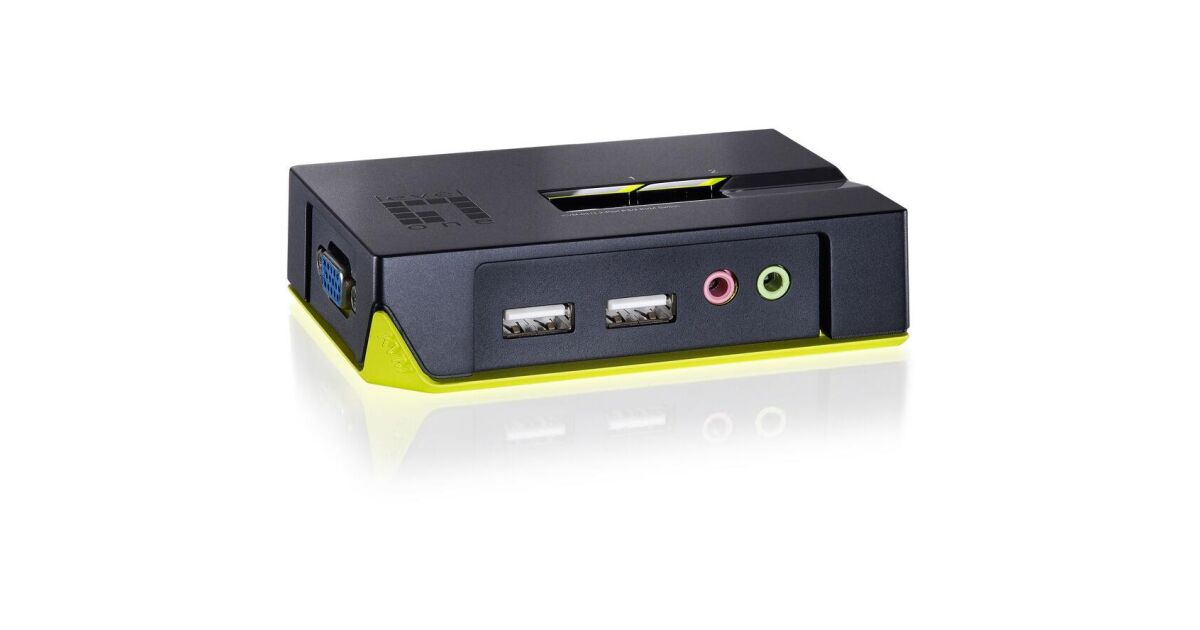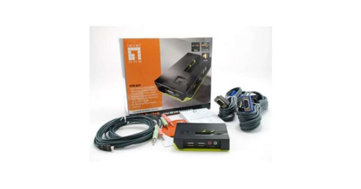 -Comutator KVM LevelOne KVM-0221 (2 porturi, USB, audio, cu set de cabluri) Descriere