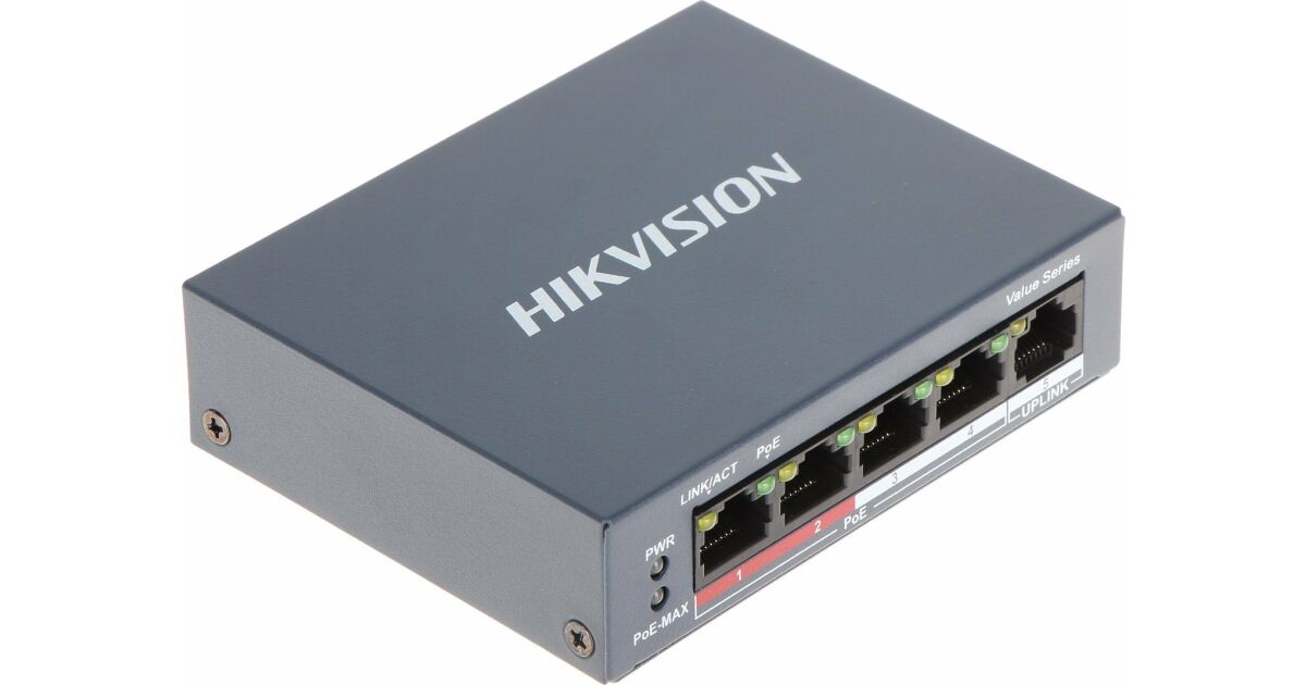 Acest switch PoE Hikvision DS-3E0105P-E/M este alegerea ideală pentru rețelele de acasă sau pentru birouri mici. Dispune de 4 porturi Gigabit Ethernet și 1 port uplink, astfel încât să vă puteți conecta cu ușurință dispozitivele. Datorită funcției PoE (Power over Ethernet) încorporate, poate furniza energie de la distanță către dispozitivele compatibile, cum ar fi camerele IP.
